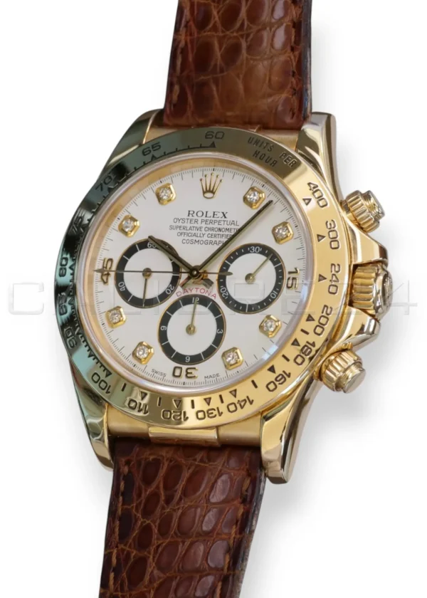 Rolex Daytona Yellow Gold 16518 White Dial Diamond Set Markers on Leather (1996)