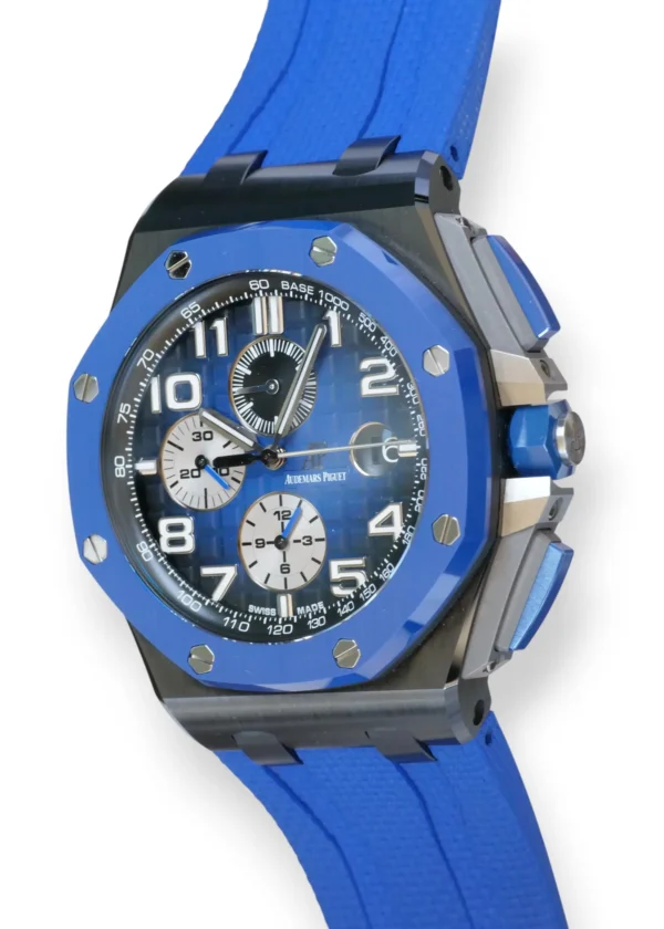 Featuring a very beautiful, a highly desirable and very rare, Audemars Piguet Royal Oak, Boutique-exclusive dial, discontinued model 15400ST, in stainless steel 41mm case and integrated bracelet. The watch features a Blue dial with “Grande Tapisserie” pattern, white gold applied hour-markers and Royal Oak hands with luminescent coating.