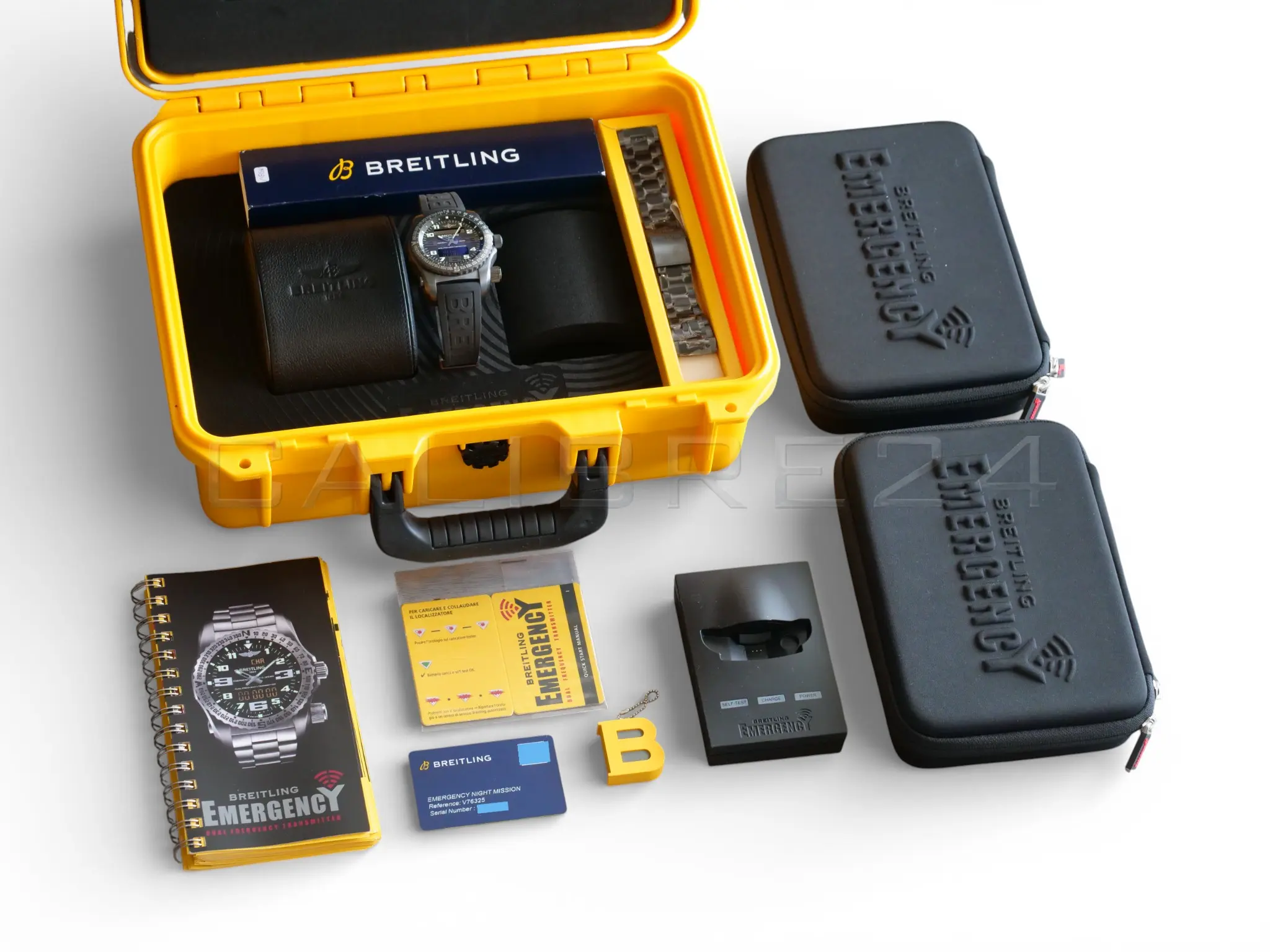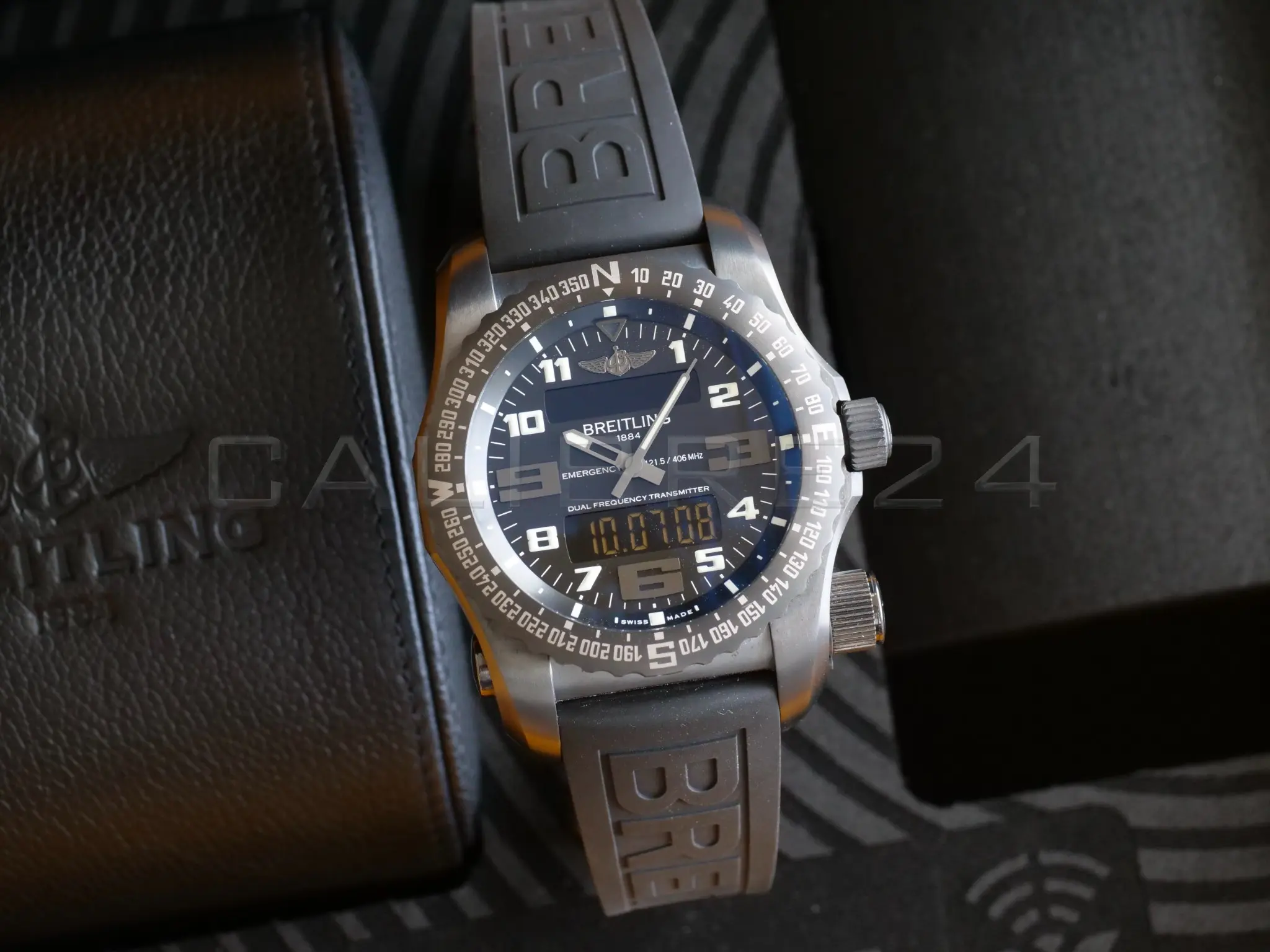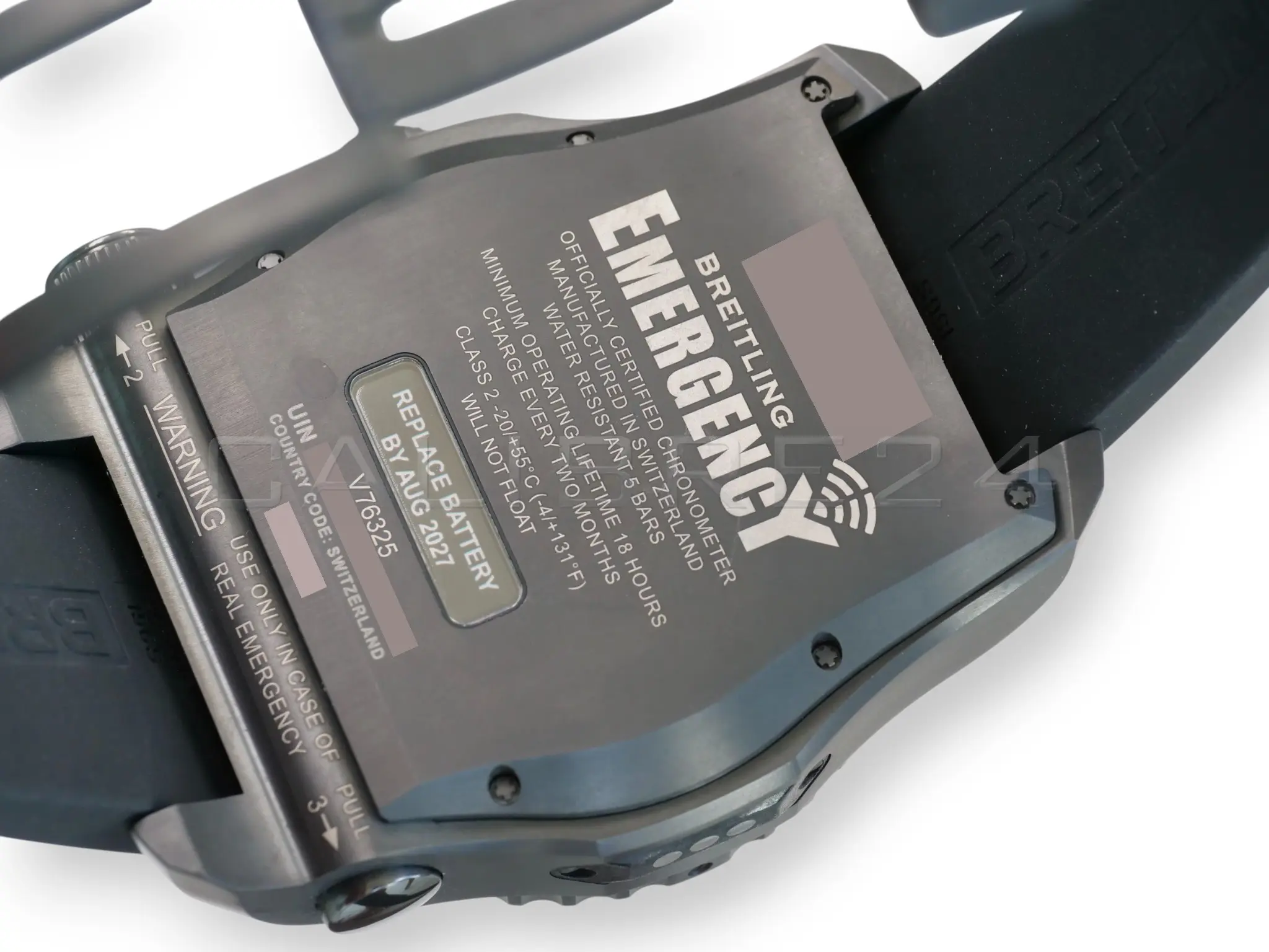 All photos on this listing are from the actual Breitling Emergency II Night Mission timepiece for sale and are our intellectual property across all platforms. The serial number and the card details are redacted in all the photos for privacy and security reasons.