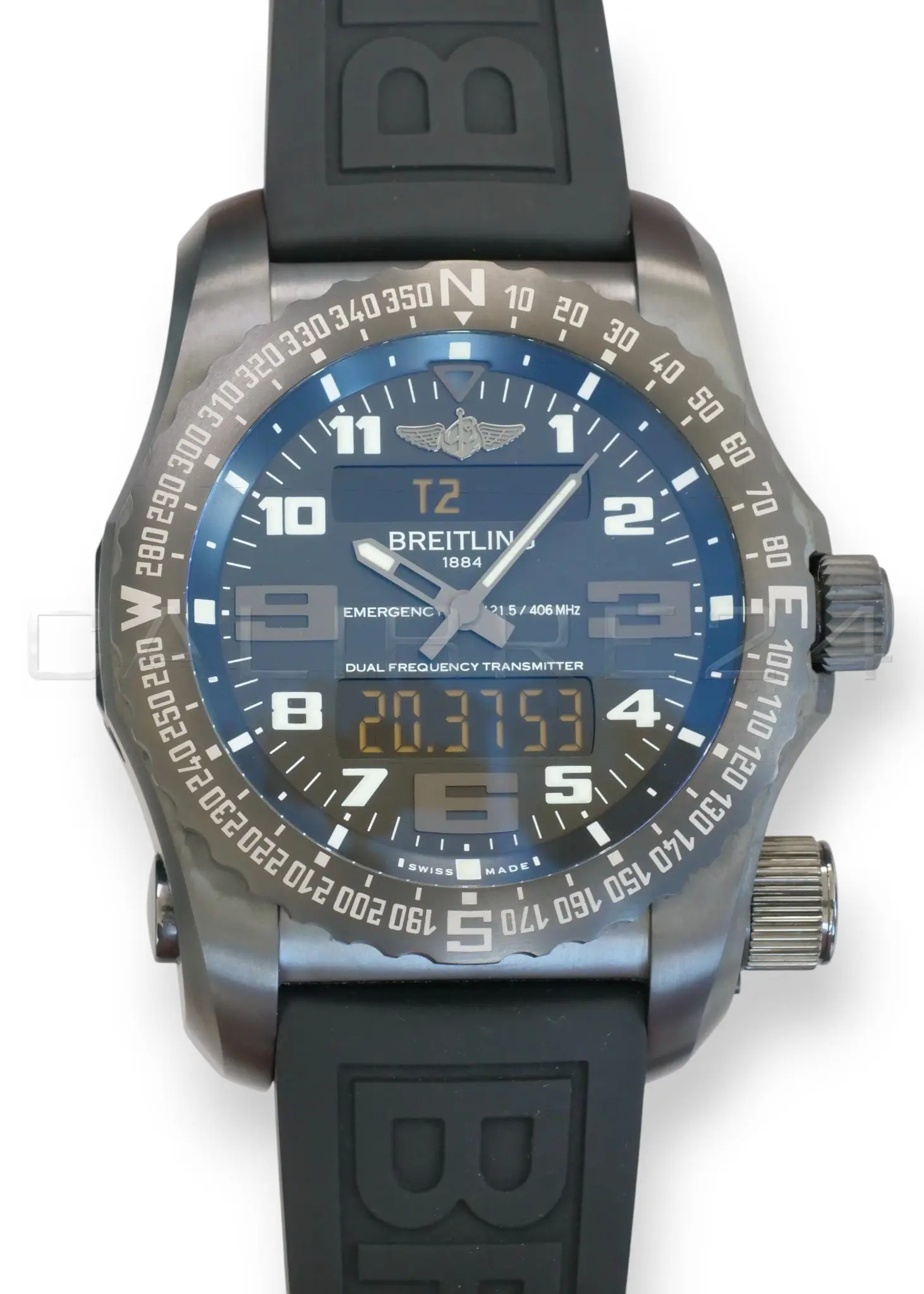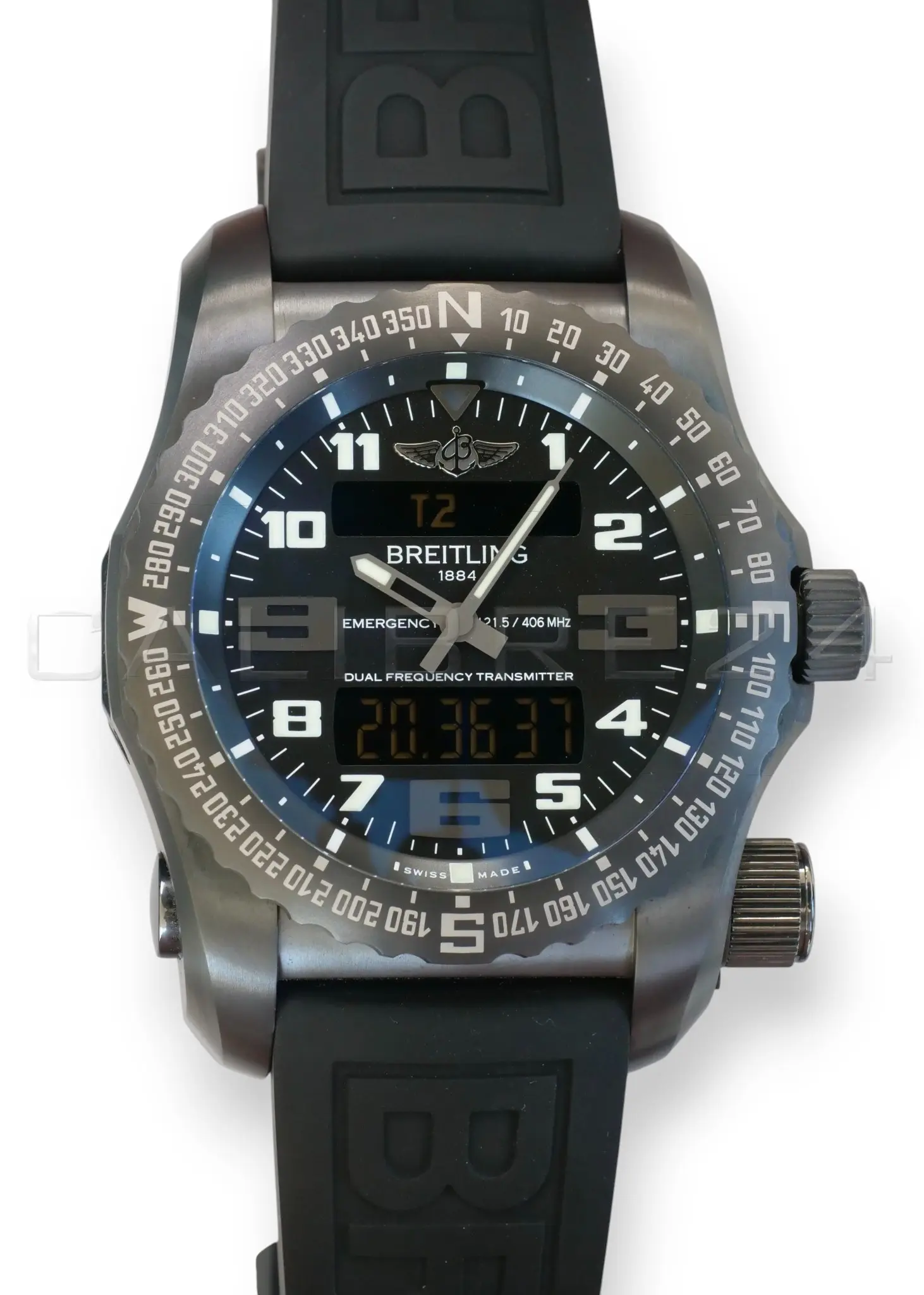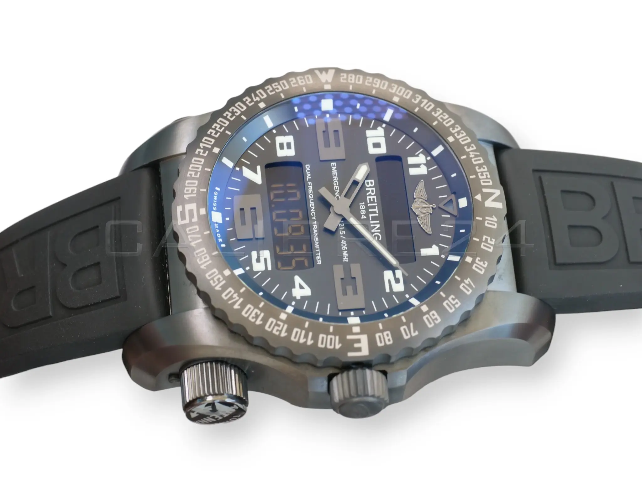 All photos on this listing are from the actual Breitling Emergency II Night Mission timepiece for sale and are our intellectual property across all platforms. The serial number and the card details are redacted in all the photos for privacy and security reasons.