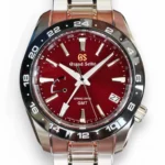 Grand Seiko Sports Collection GMT SBGE305 Hotaka Summer, dark red dial that takes inspiration from a vivid sunrise as it illuminates the steep landscape of Japan’s Hotaka mountain range in summer.