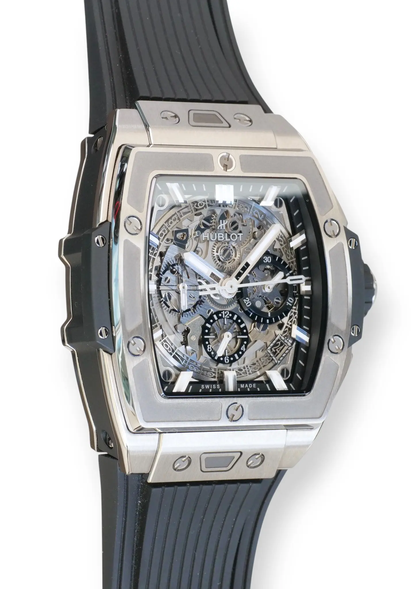 All photos are of the actual Hublot Spirit of Big Bang Tourbillon timepiece for sale and form part of the description. All serials are greyed out for privacy and security reasons.