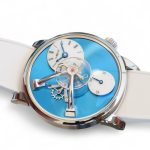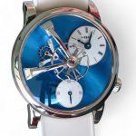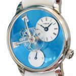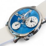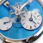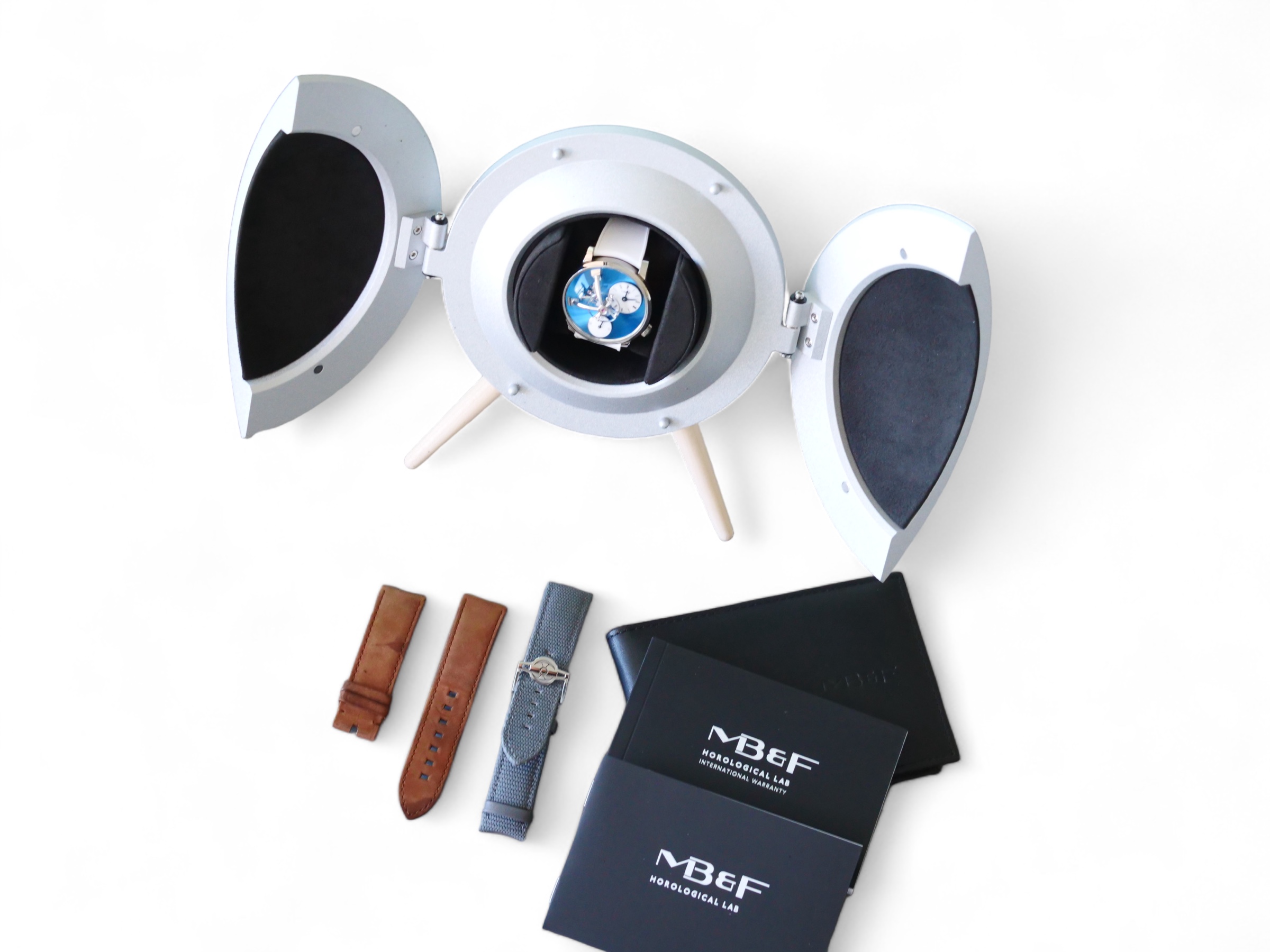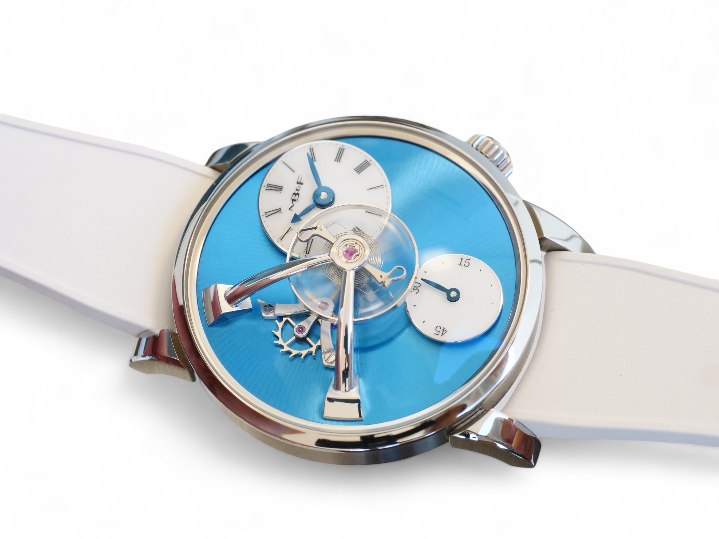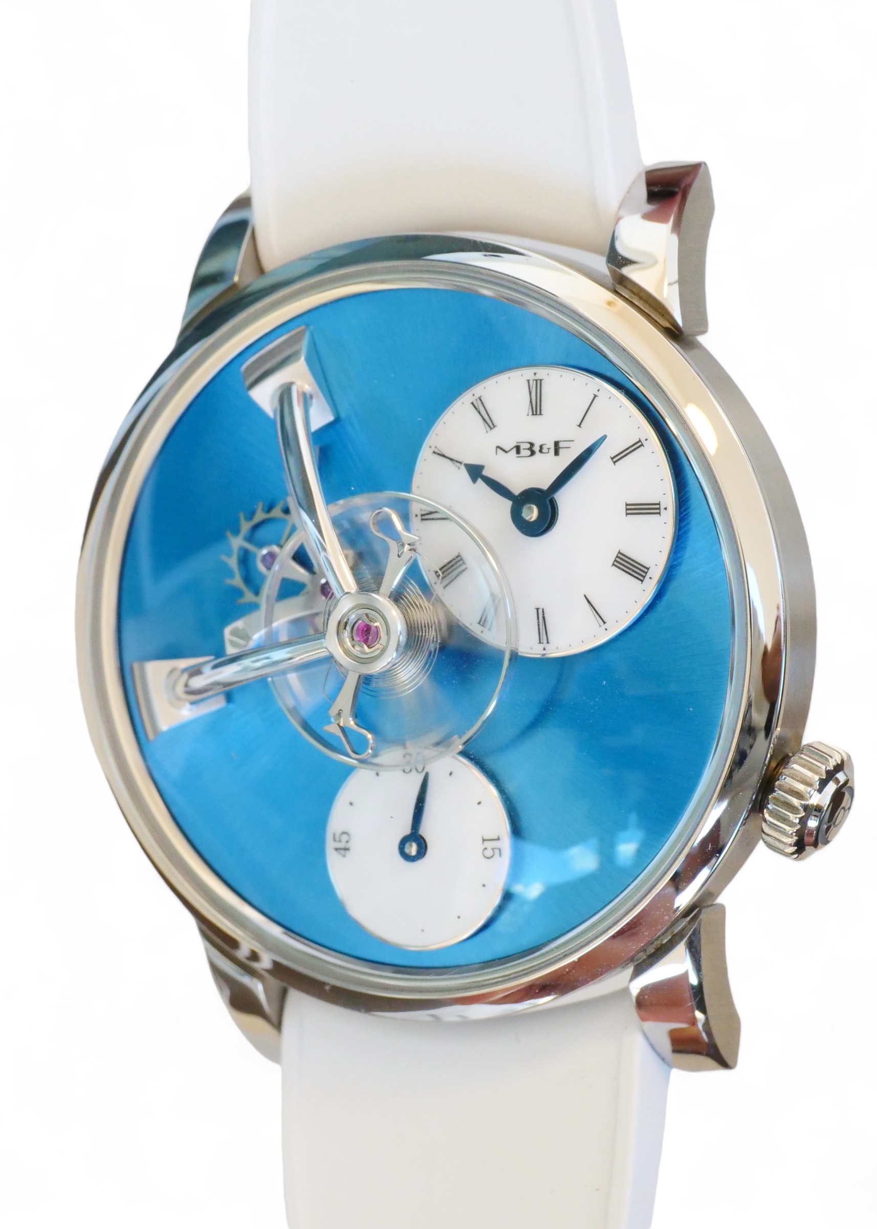 MB&F Legacy Machine LM101, one of the finest examples of independent watchmaking and high-end horology. This iconic and the incredibly beautiful MB&F Legacy Machine LM101 in stainless steel case and a spectacular blue dial is on offer for sale.