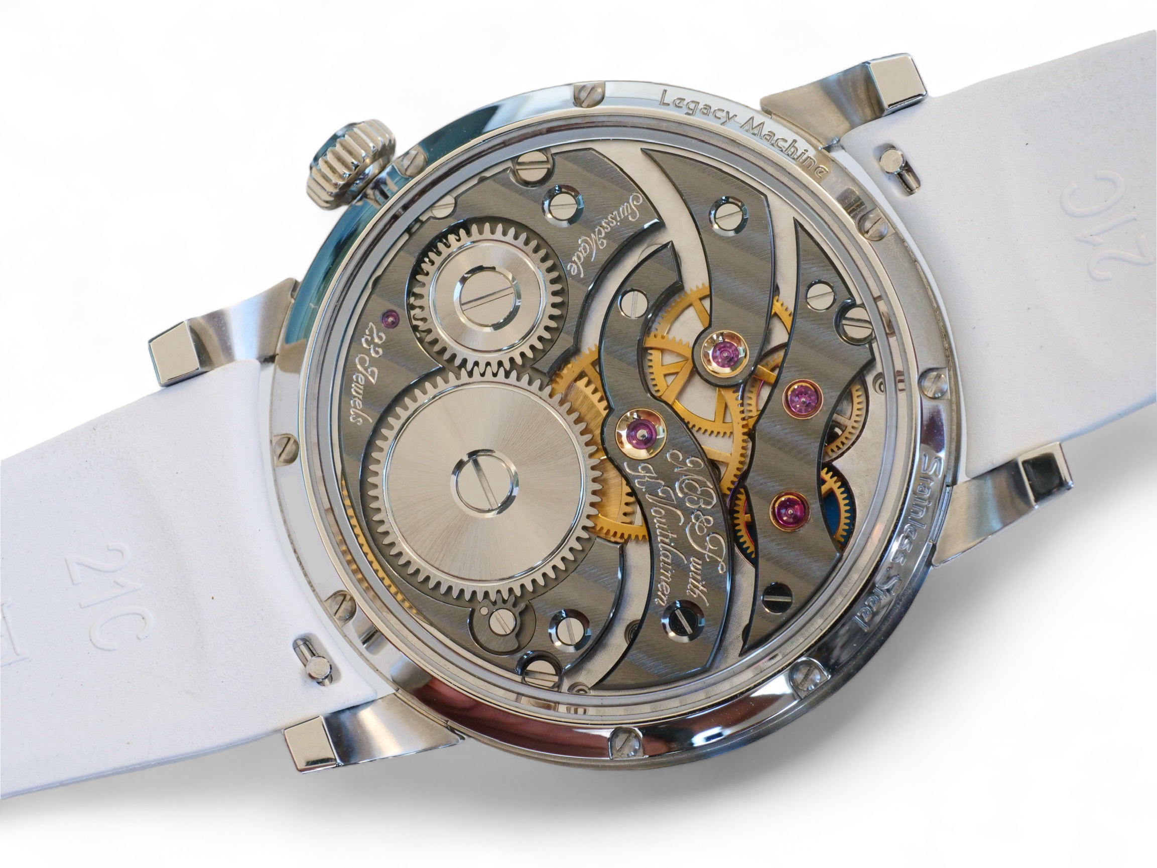This particular model the MB&F Legacy Machine LM101 is also a further rarer offering by the prestigious Swiss brand, being the only Legacy Machine in 40mm case offered in stainless steel case with the rest of all the offering, all in precious metals (white gold, red gold etc.).