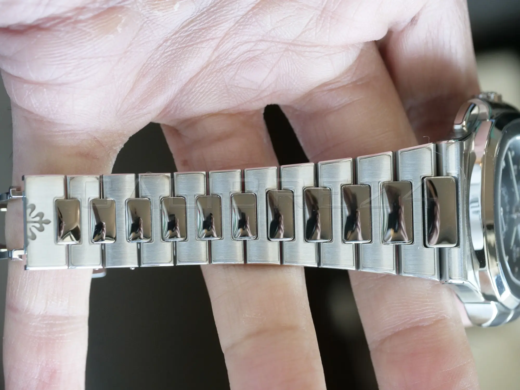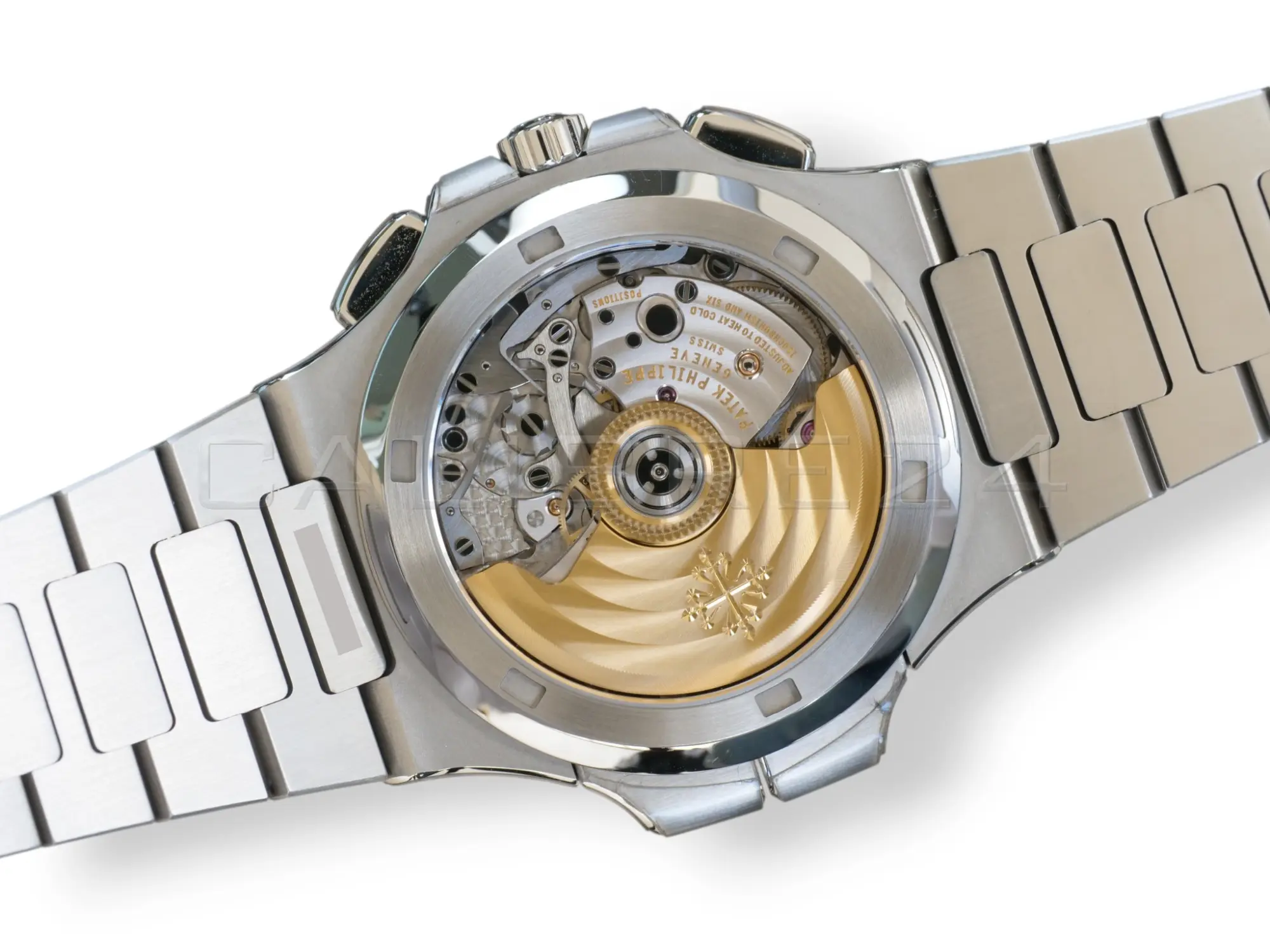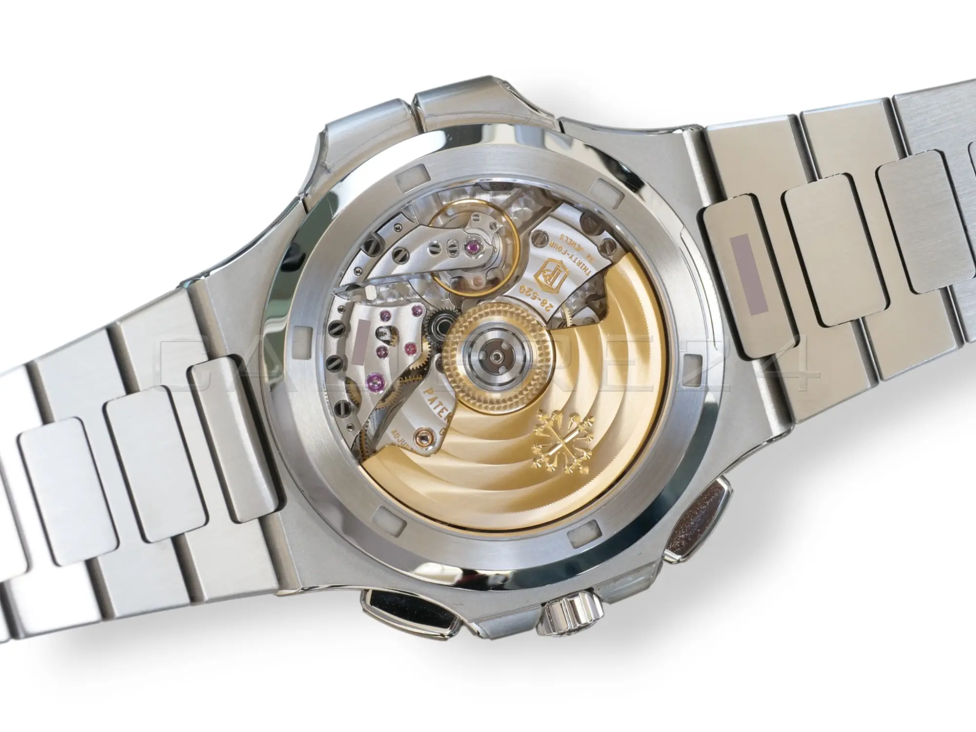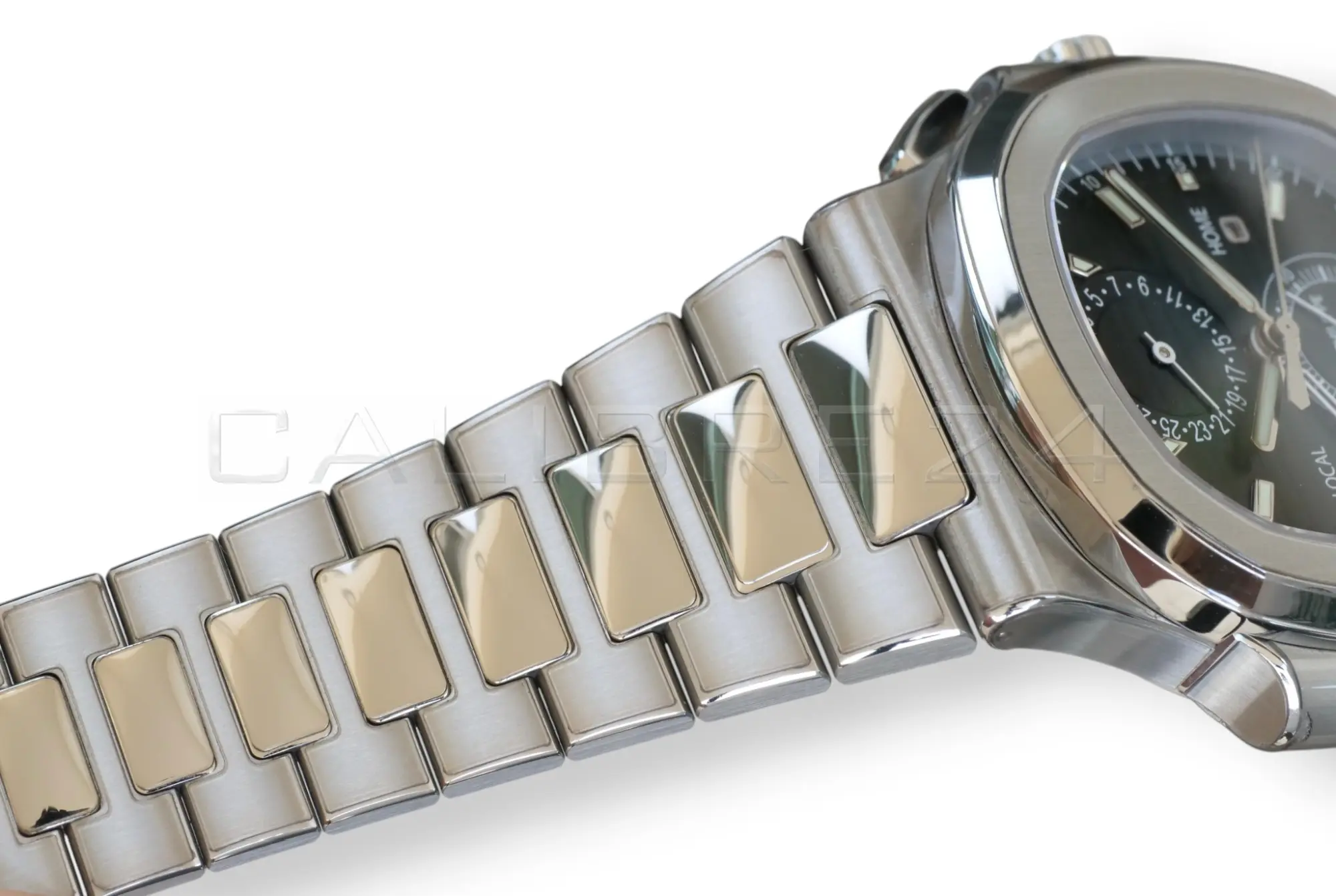 - Dual time zone + chronograph complication – rare combination in the Nautilus line