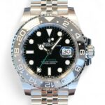 Rolex Bruce Wayne GMT Master II, the latest 2024 release, a highly sought after Rolex GMT Master-II in Oystersteel, with a ceramic grey and black bezel and the green GMT hand, model reference 126710GRNR, on the most popular jubilee bracelet configuration. This model is also referred to by watch collectors as Rolex GMT Master-II Bruce Wayne or just Bruce Wayne.