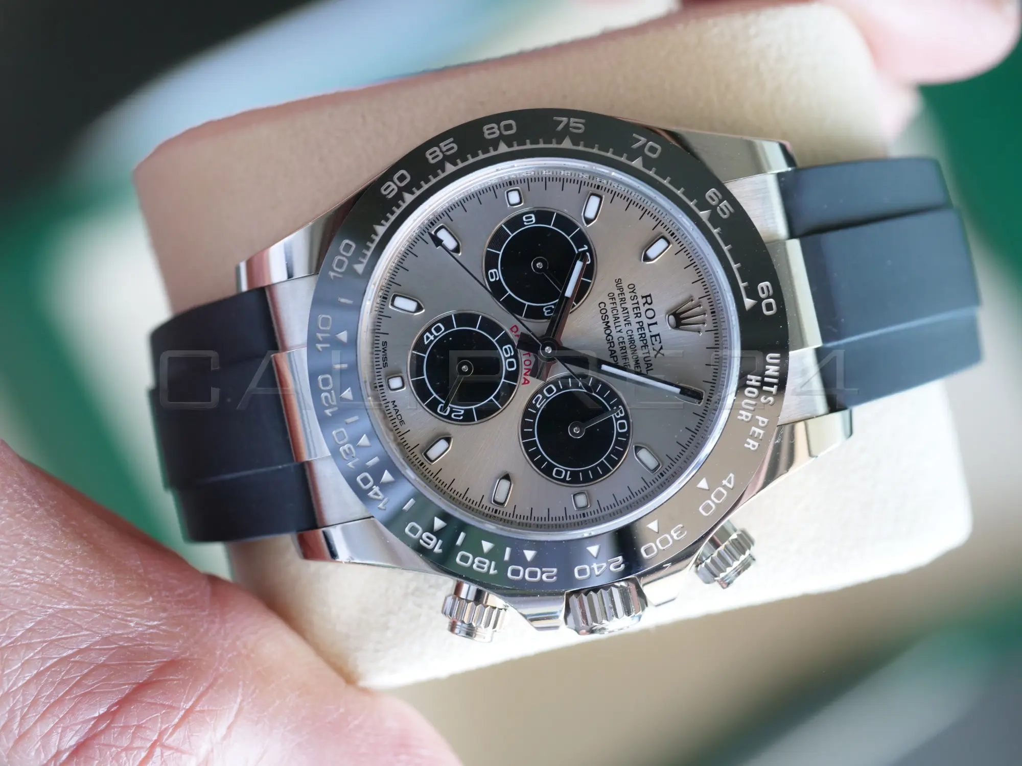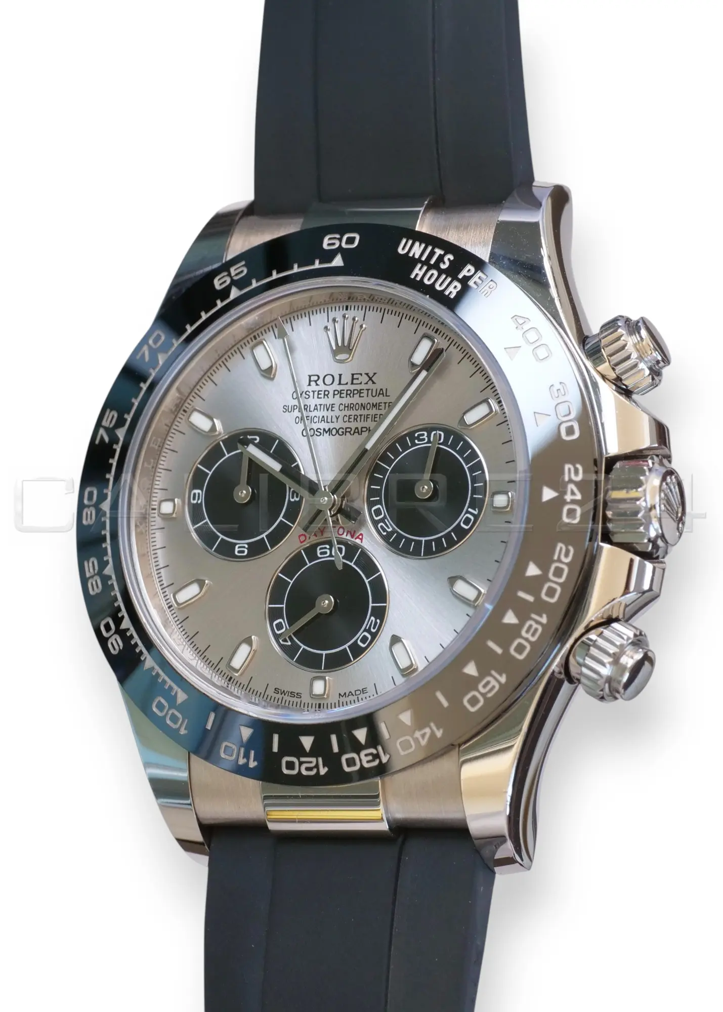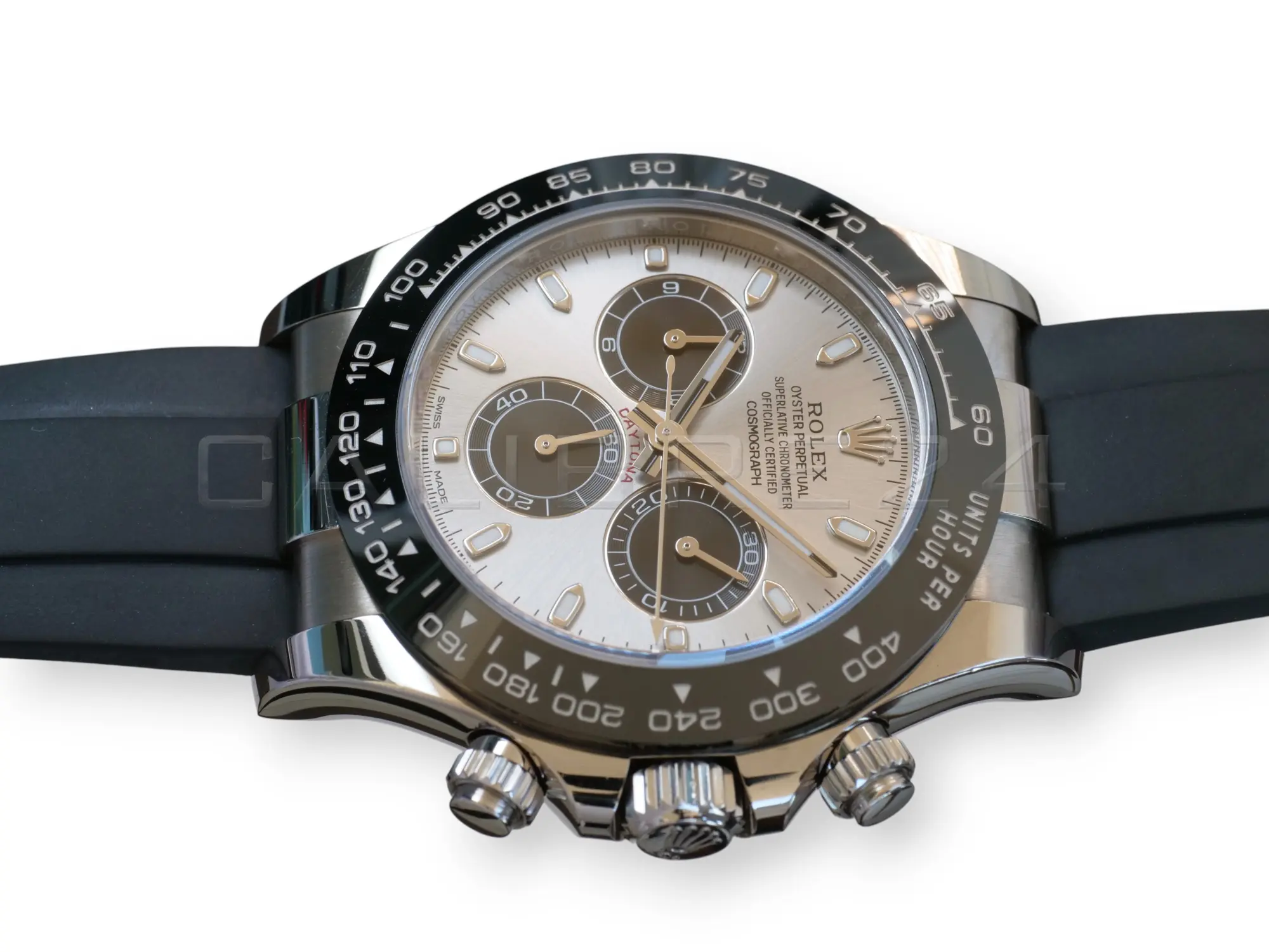 All the photos are of the actual Rolex Cosmograph Daytona Ghost available and offered for sale and form part of the description and condition disclosure. Please note that the serial number and date are redacted in all photos due to security and privacy reasons.