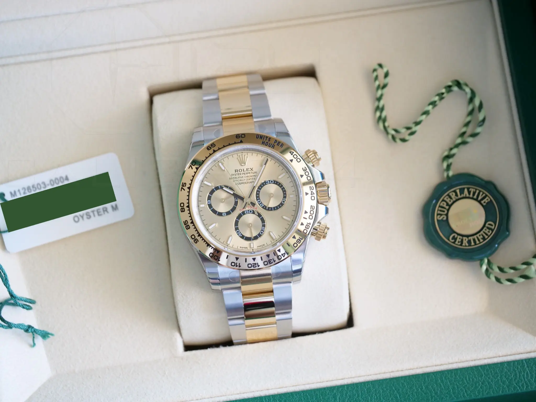 Any questions, please reach out to us in the chat or via the enquiry form and we will be happy to assist with any queries for this Rolex Cosmograph Daytona two-tone 126503 Champagne Dial.