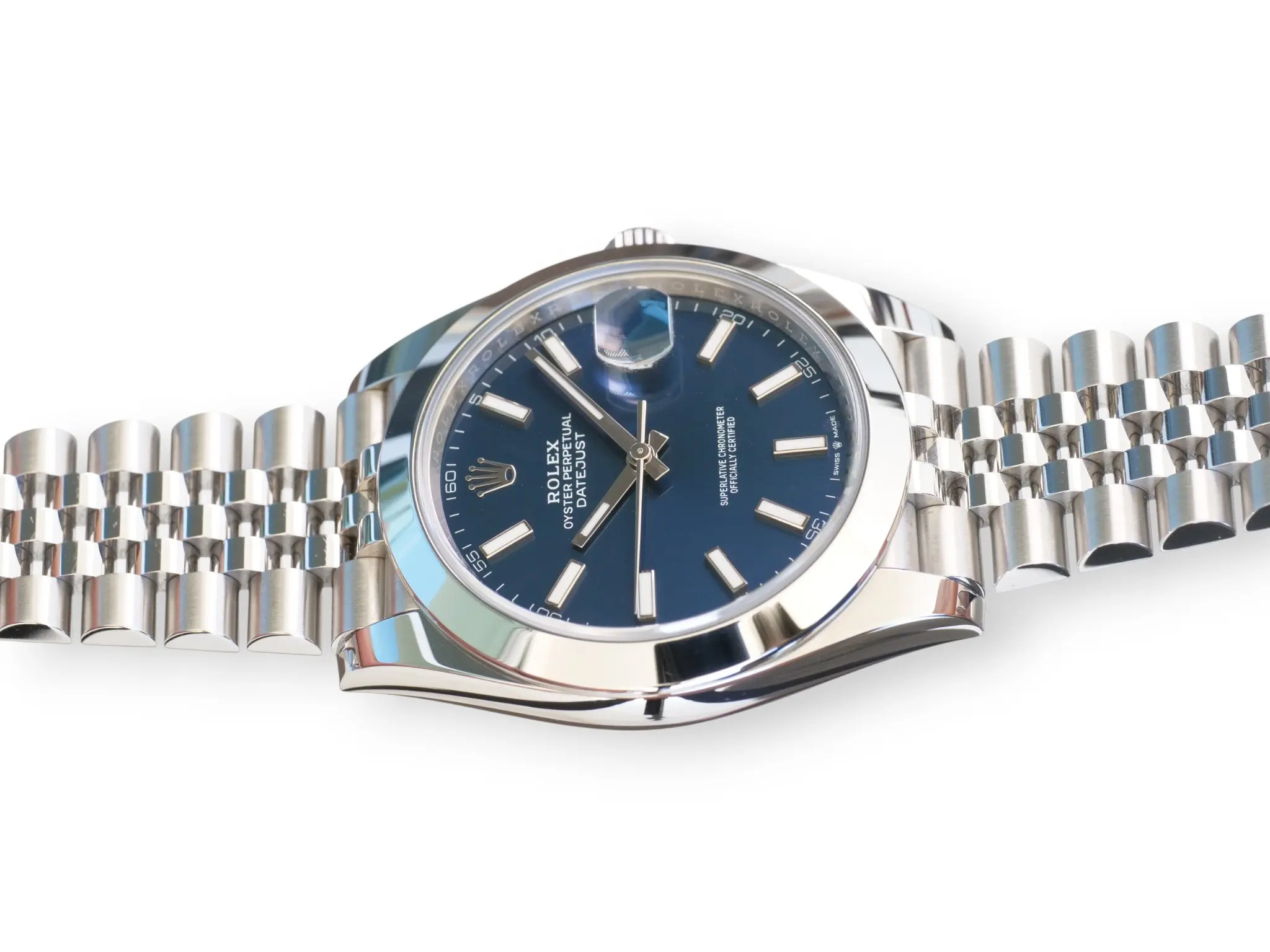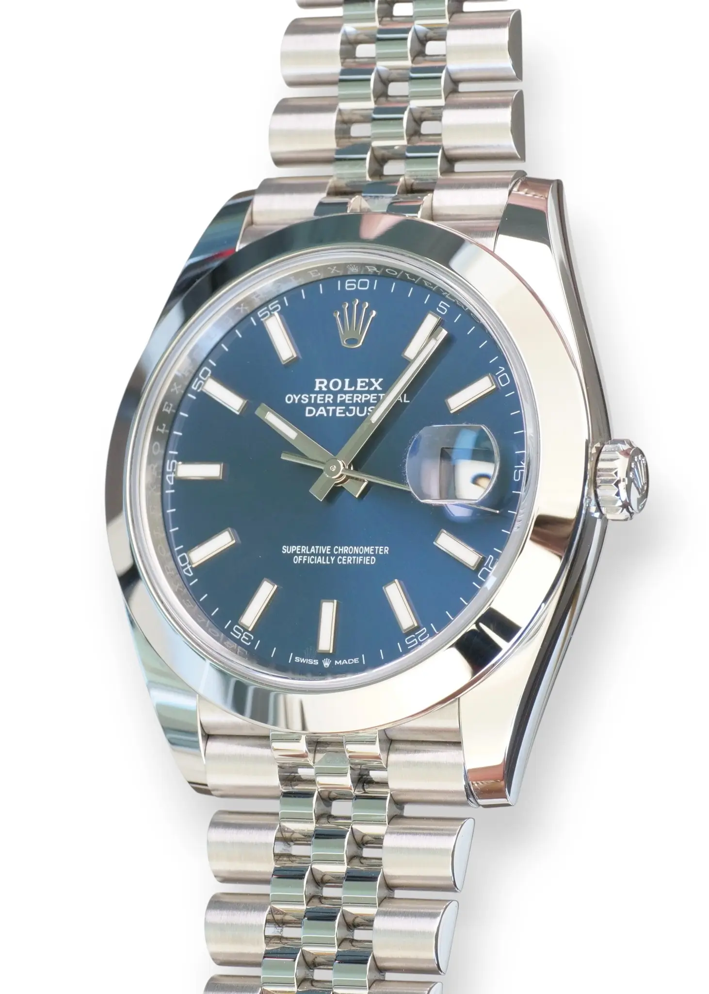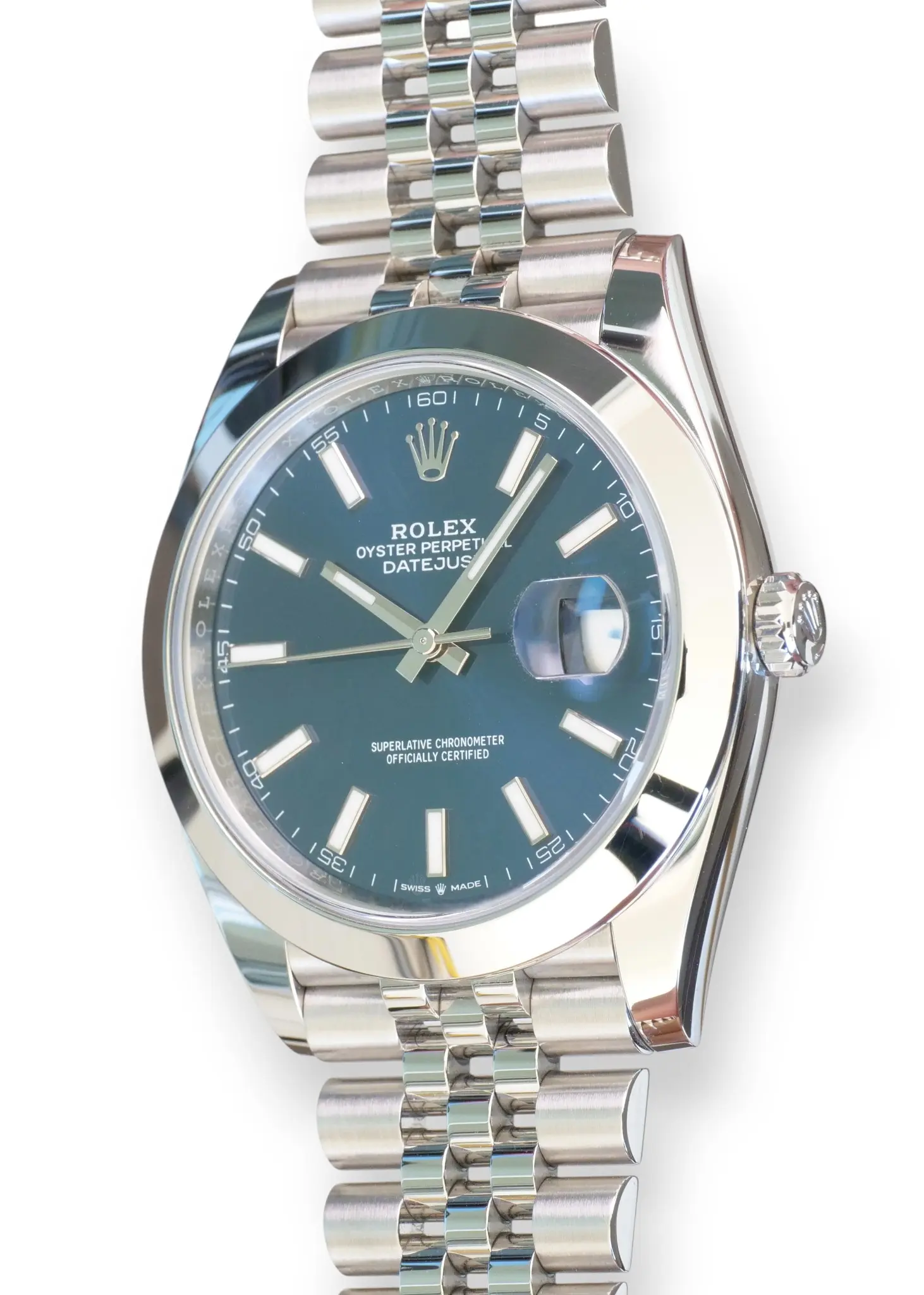Rolex Datejust 41 Bright Blue Dial, in a beautiful configuration of Smooth bezel and Jubilee bracelet, model reference 126300.