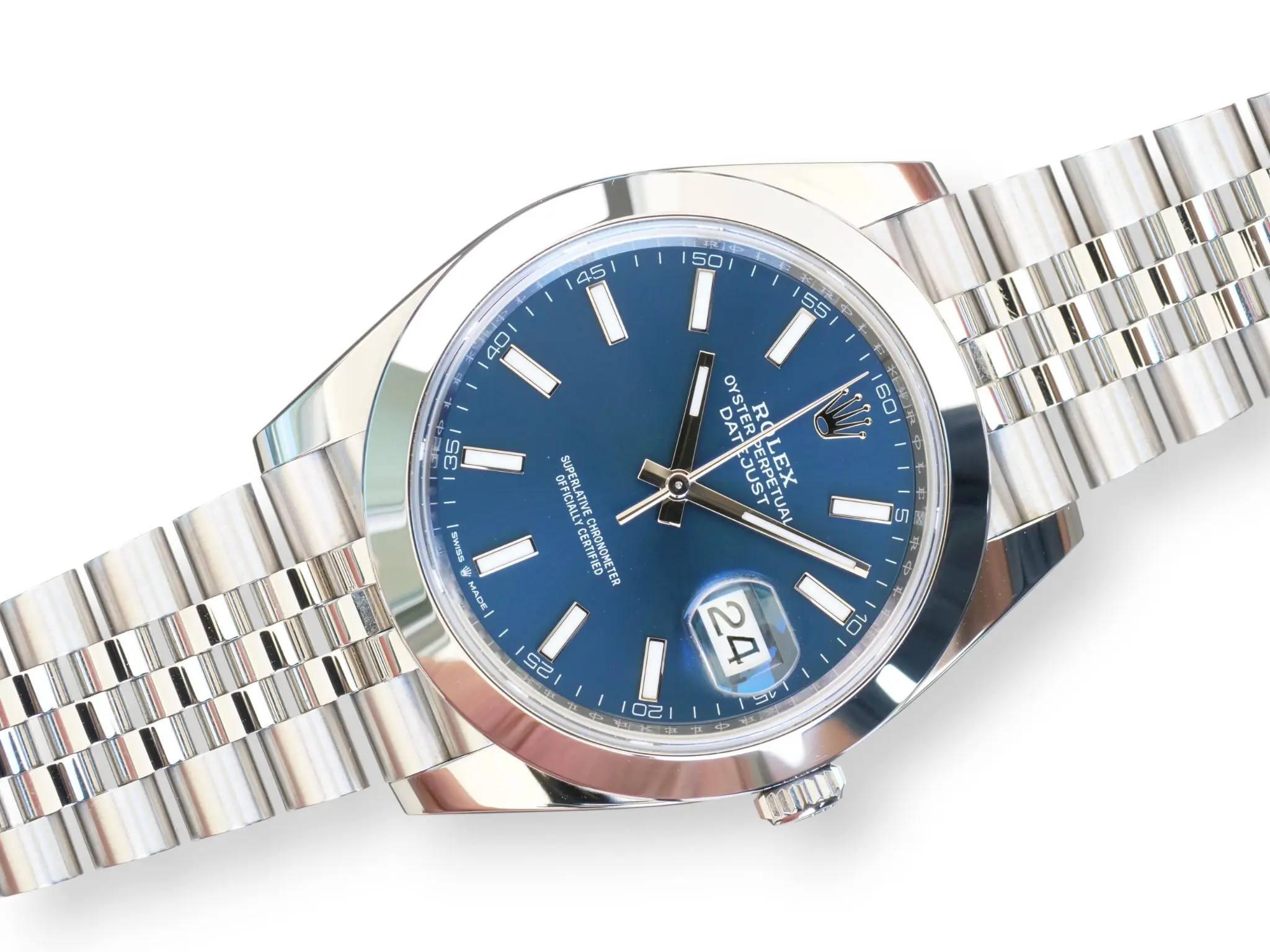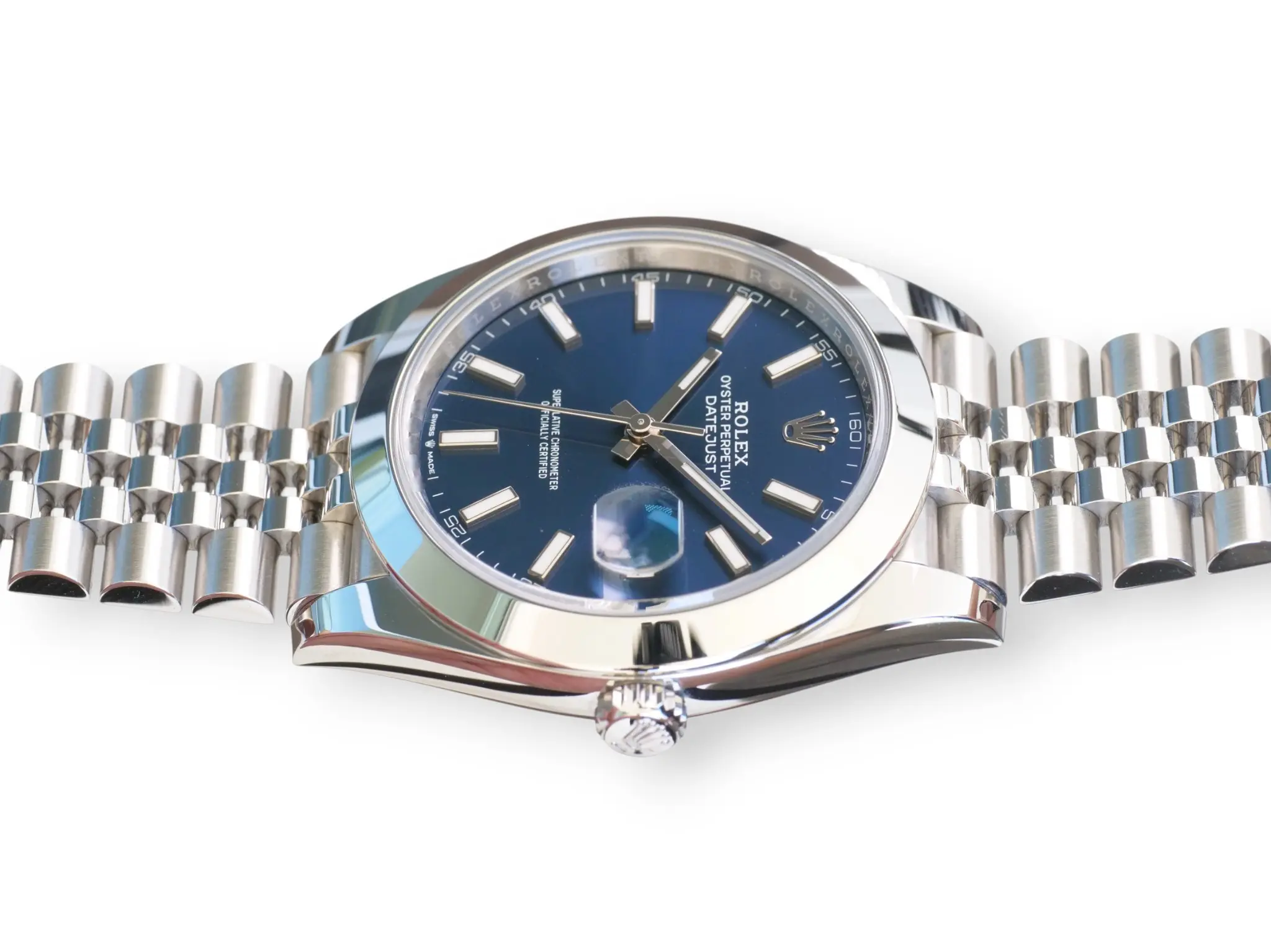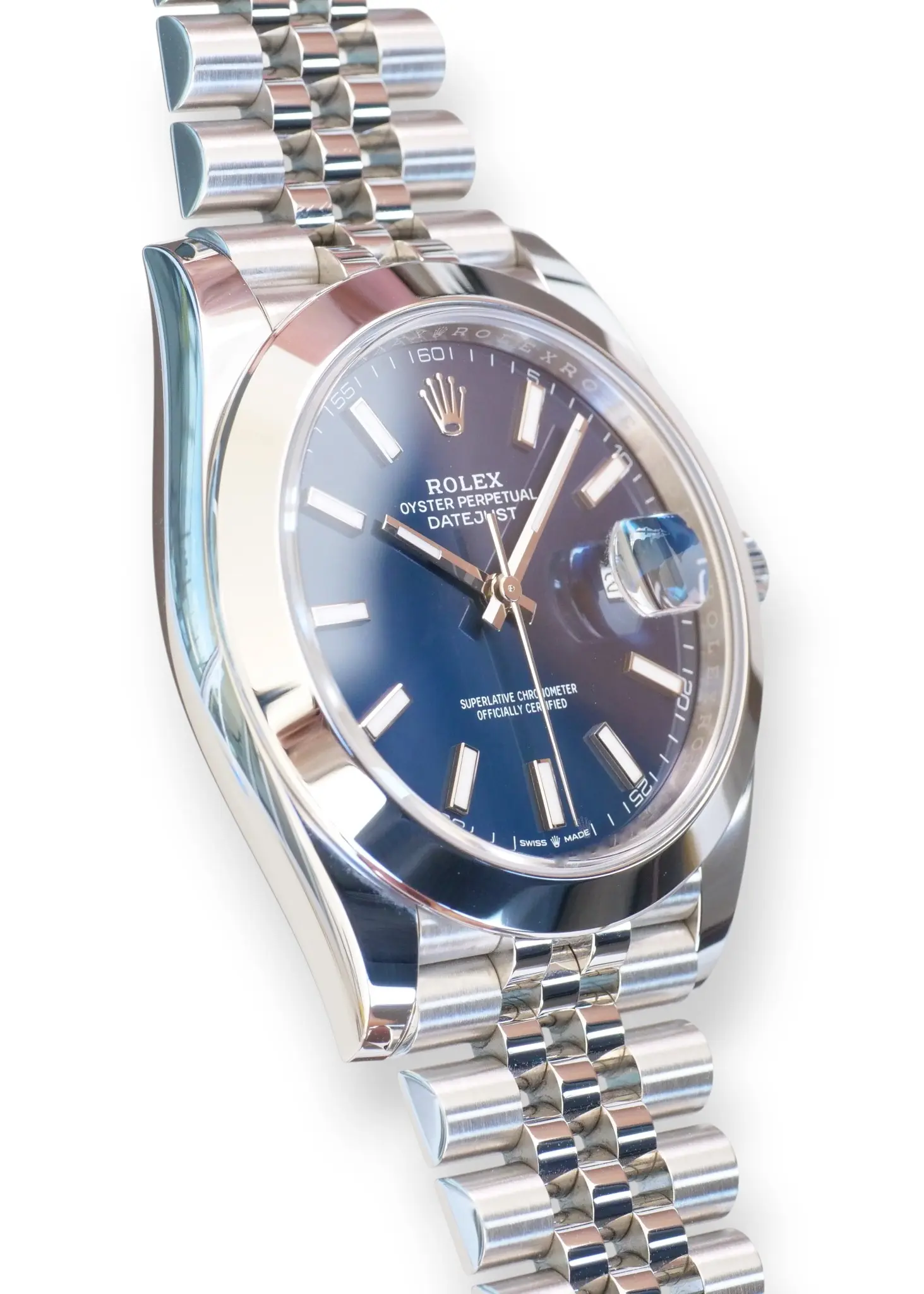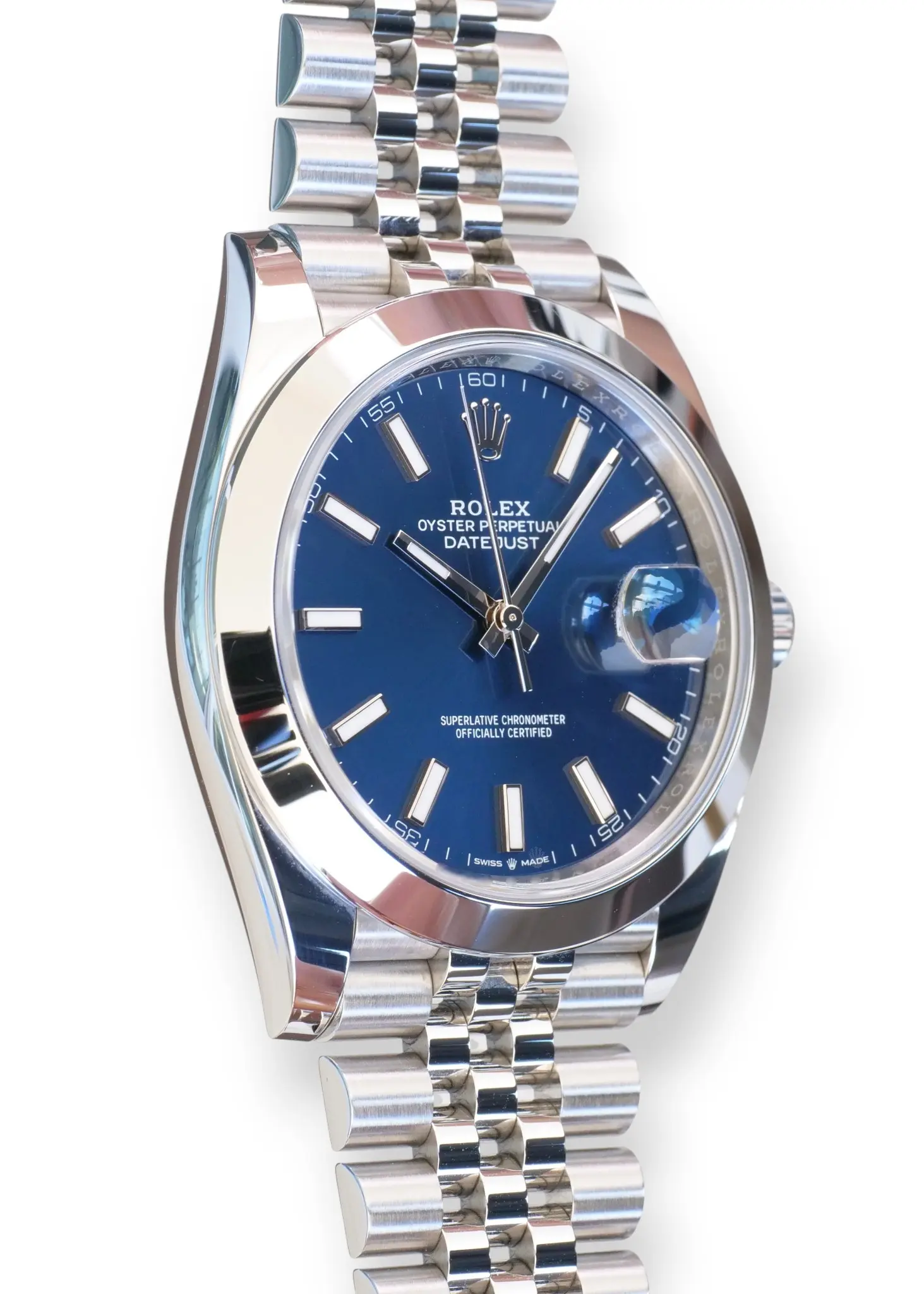 Rolex Datejust 41 Bright Blue Dial, in a beautiful configuration of Smooth bezel and Jubilee bracelet, model reference 126300.
