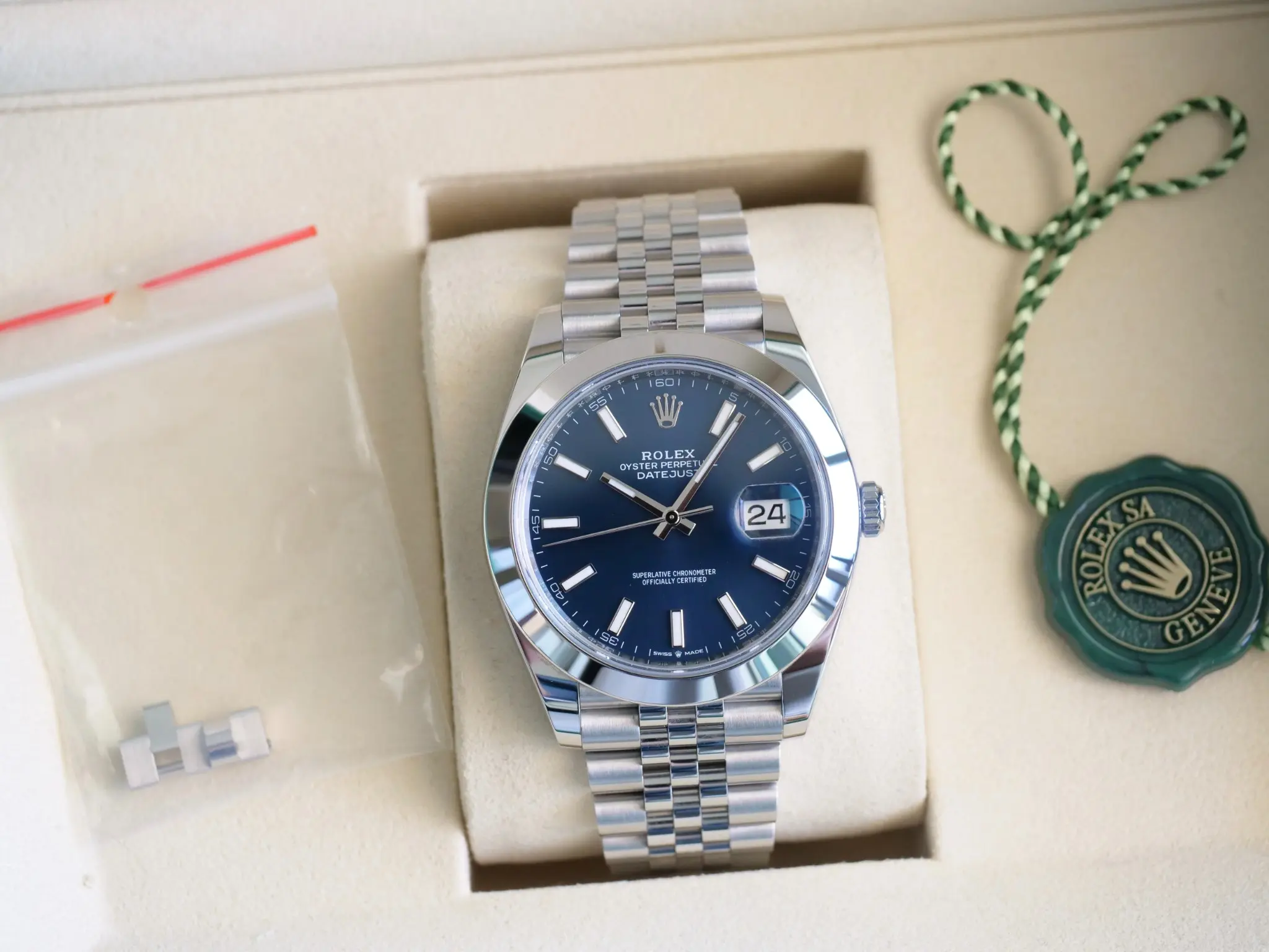 Please note that we don’t use catalog photos rather all the photos on this listing are taken from the actual Rolex Datejust 41 Bright Blue Dial timepiece for sale and are our intellectual property across all our platforms. The photos showcase the very timepiece that is available for sale i.e. what you see is exactly what you will receive, shall you wish to purchase this timepiece.