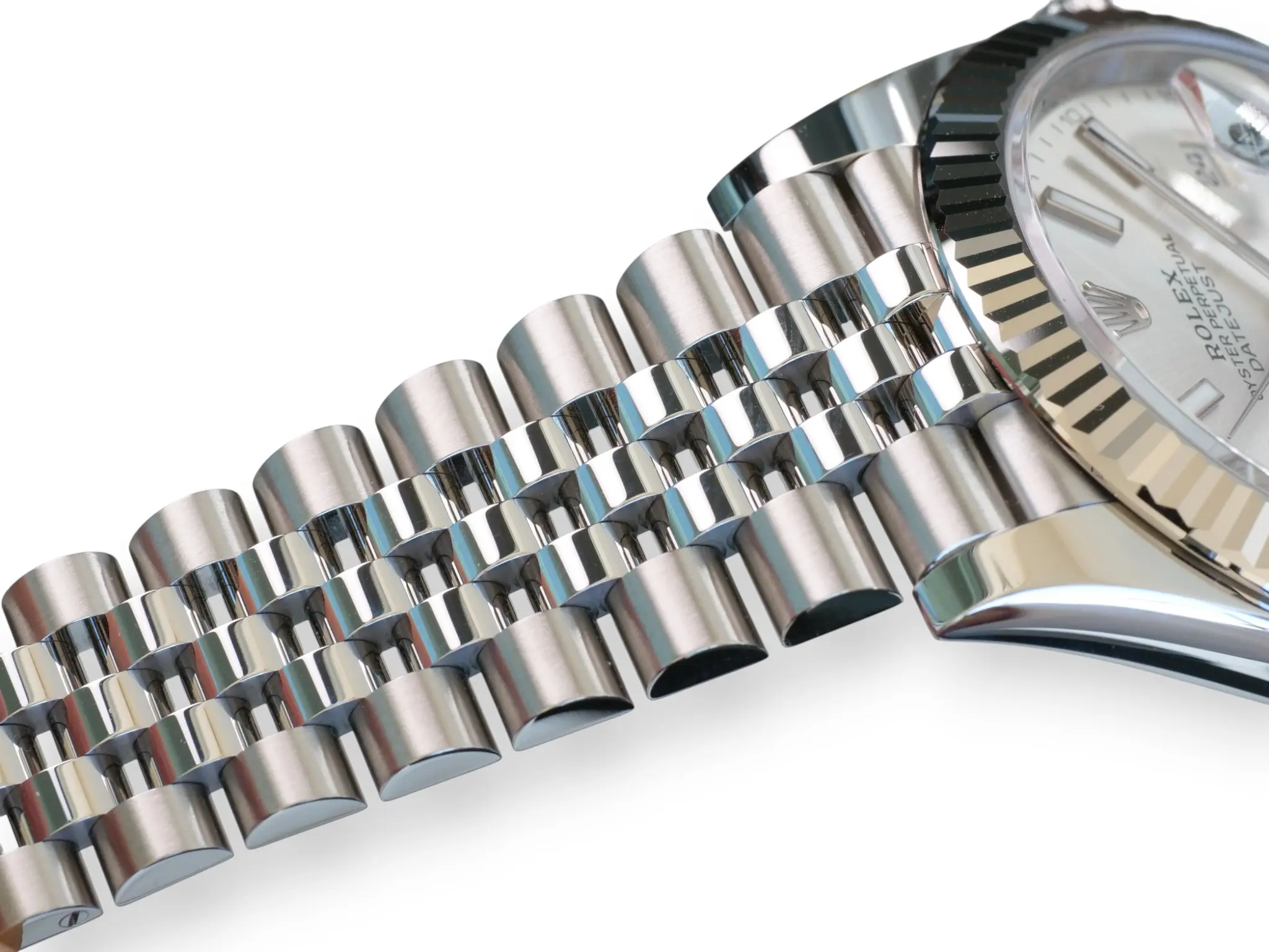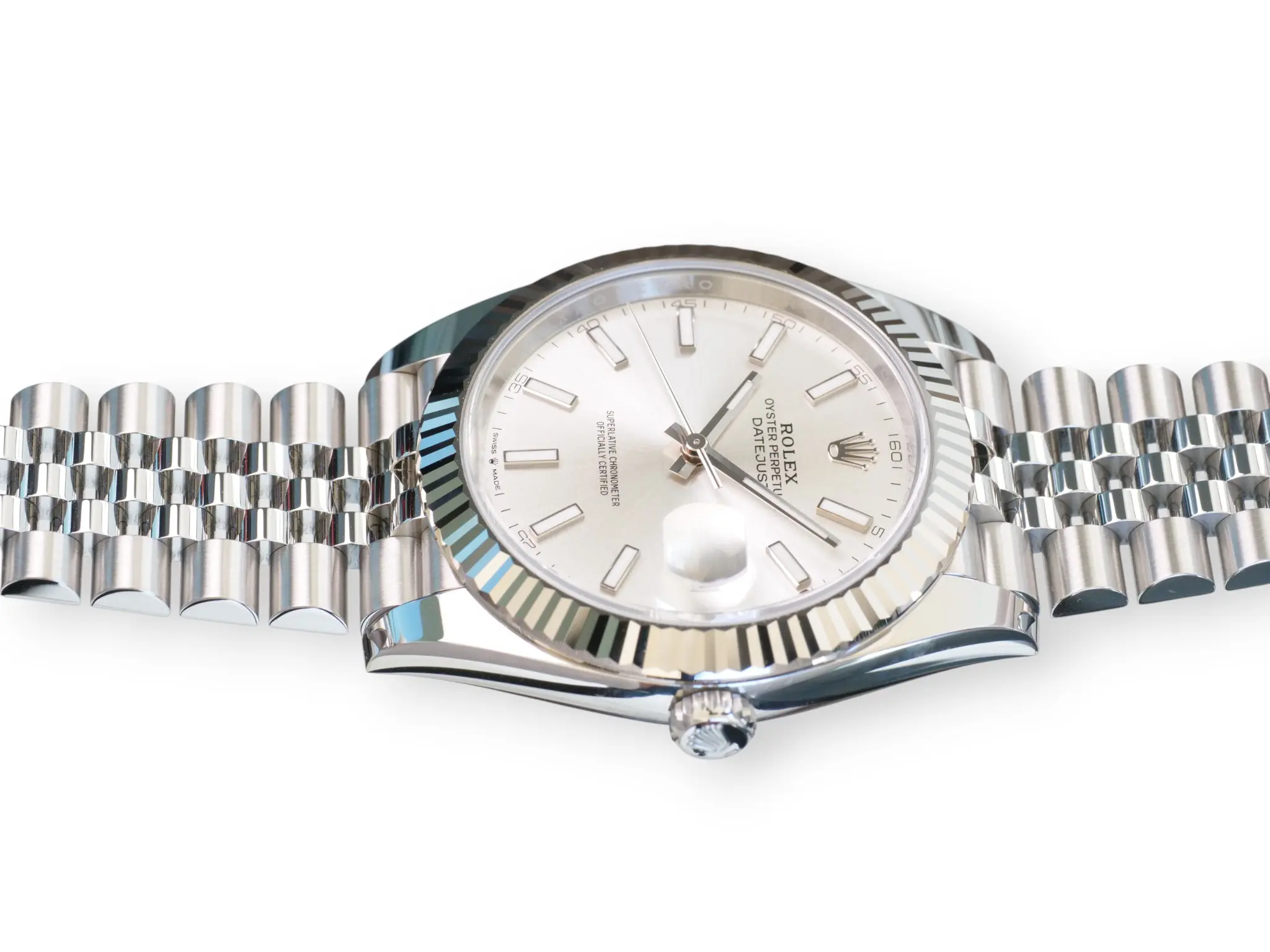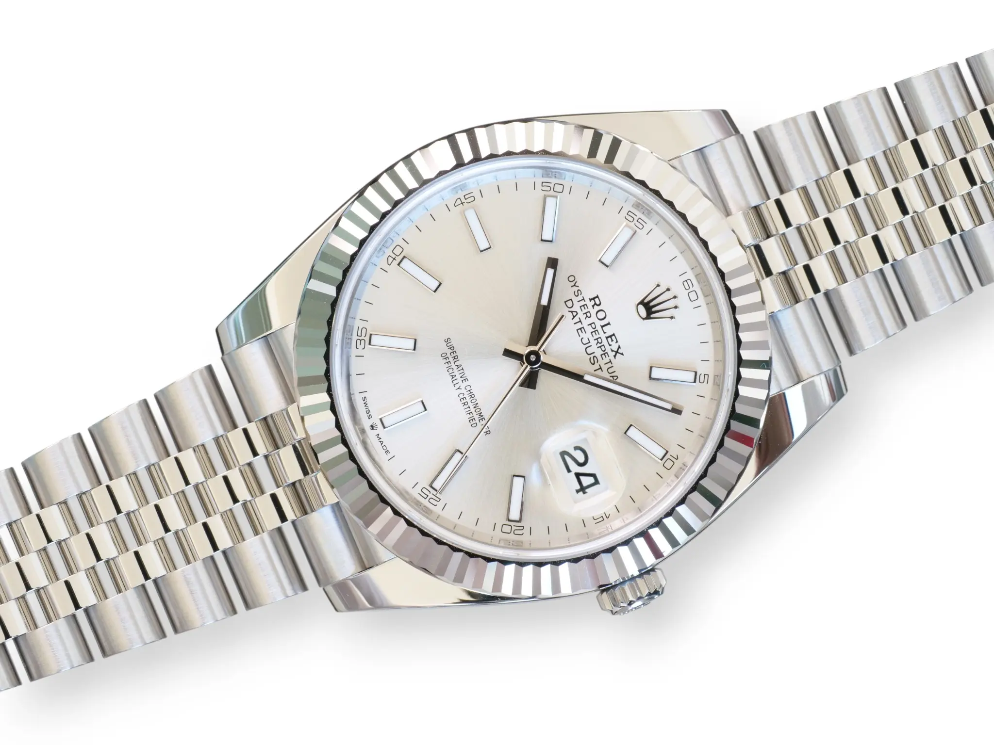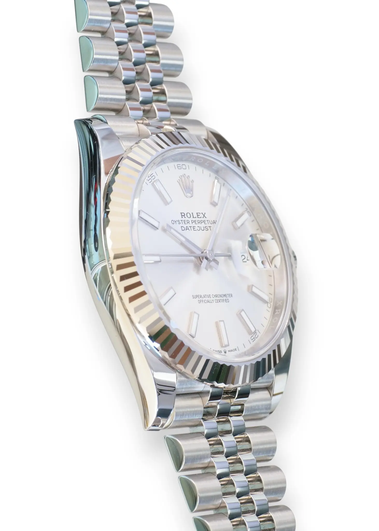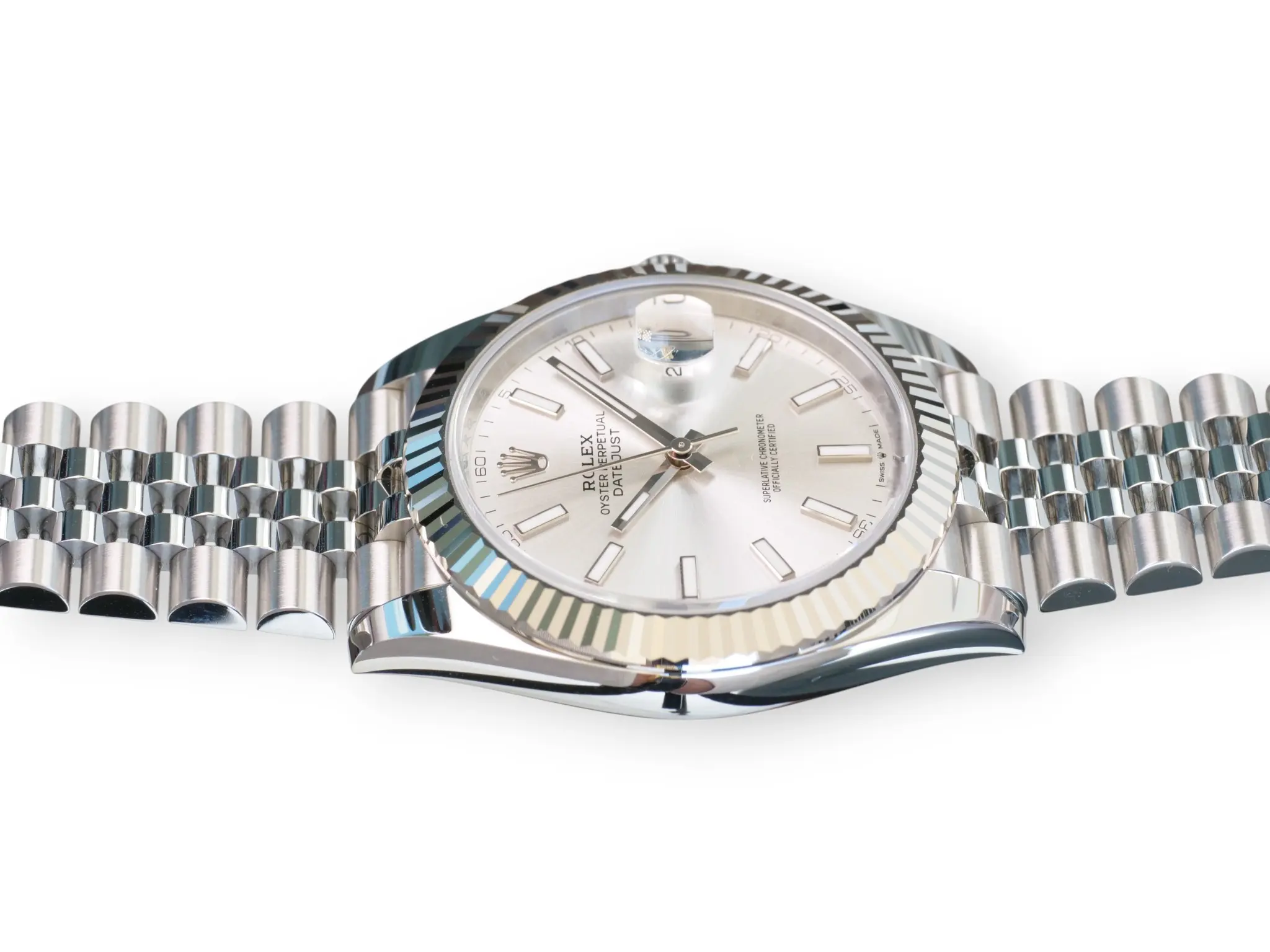 Rolex Datejust 41 Silver dial in a very beautiful and the most sought-after configuration of 18ct white gold fluted bezel and a Jubilee bracelet.