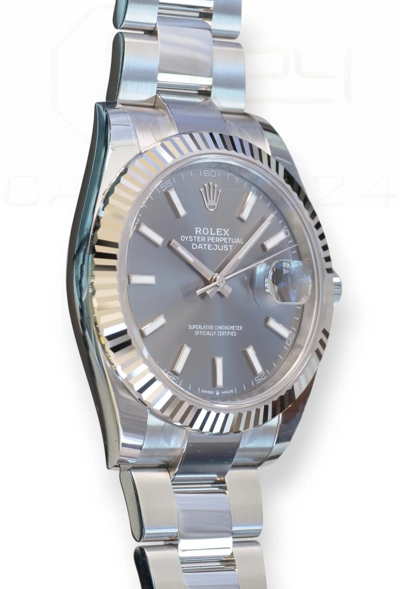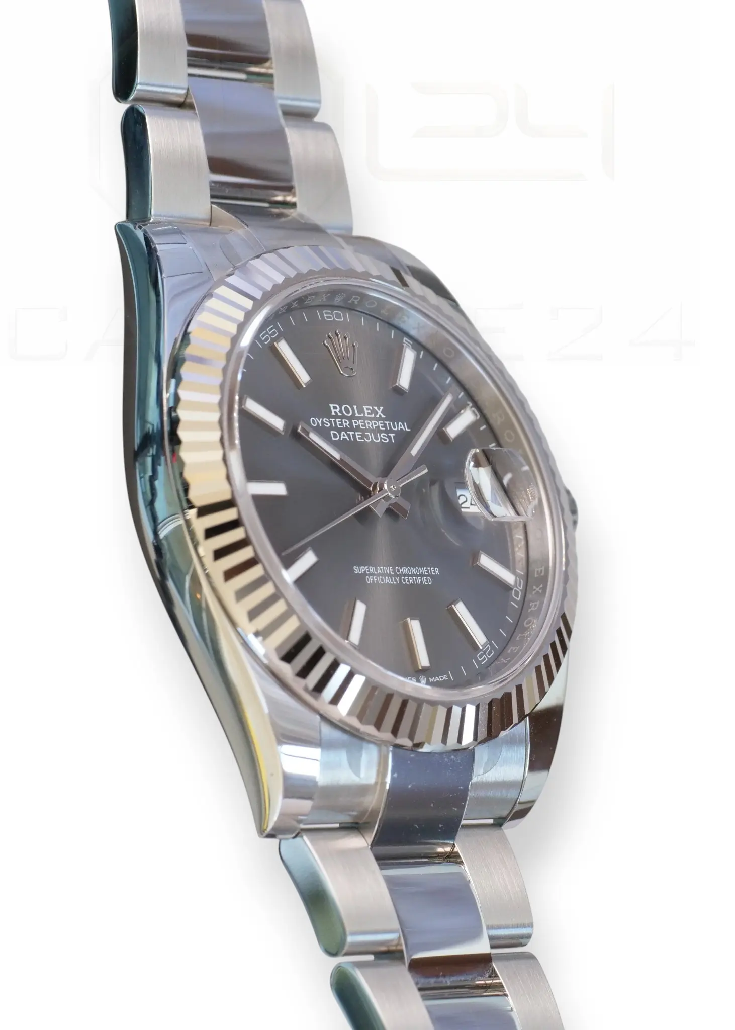 Rolex Datejust 41 Slate Dial 126334 in a very beautiful configuration of 18ct white gold fluted bezel and a 904L Oystersteel bracelet.