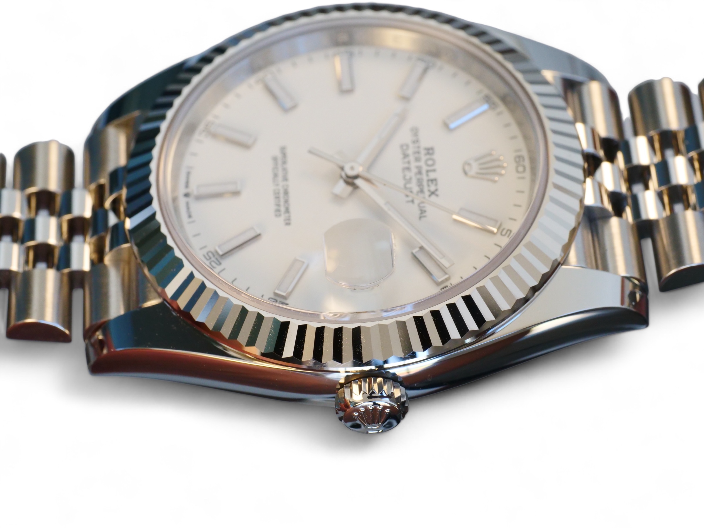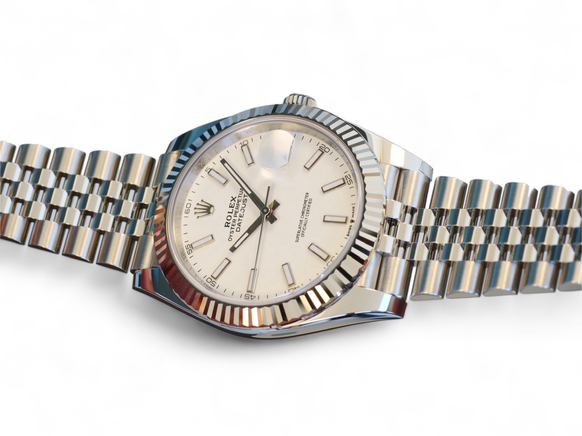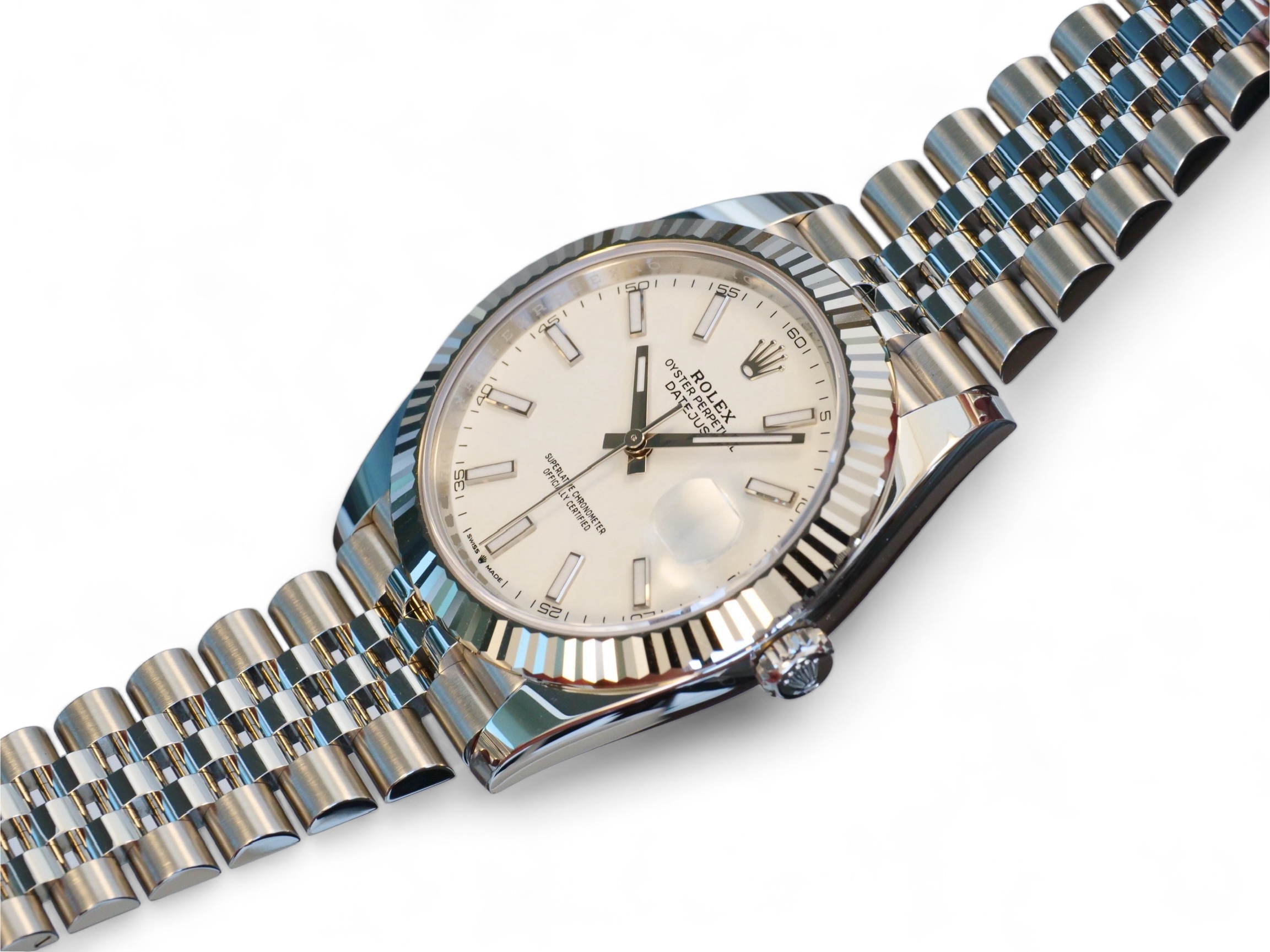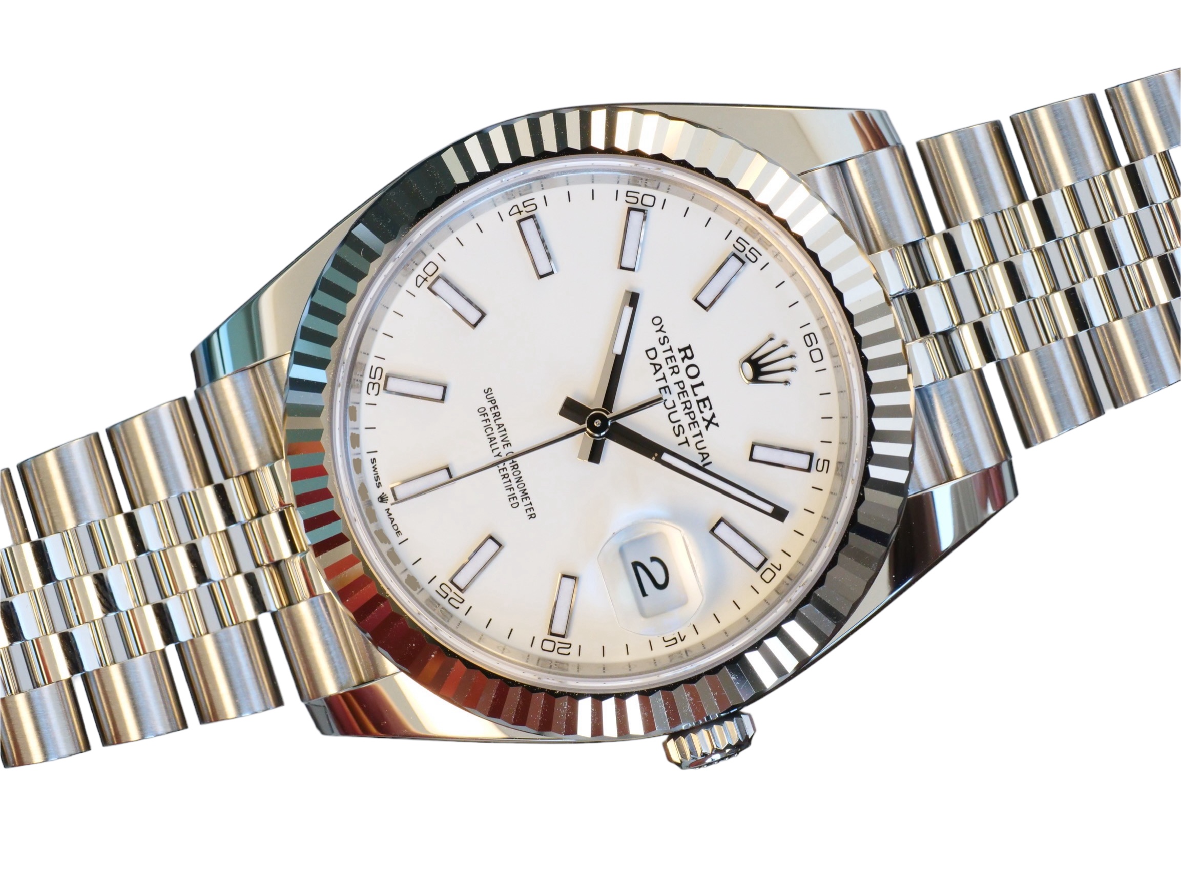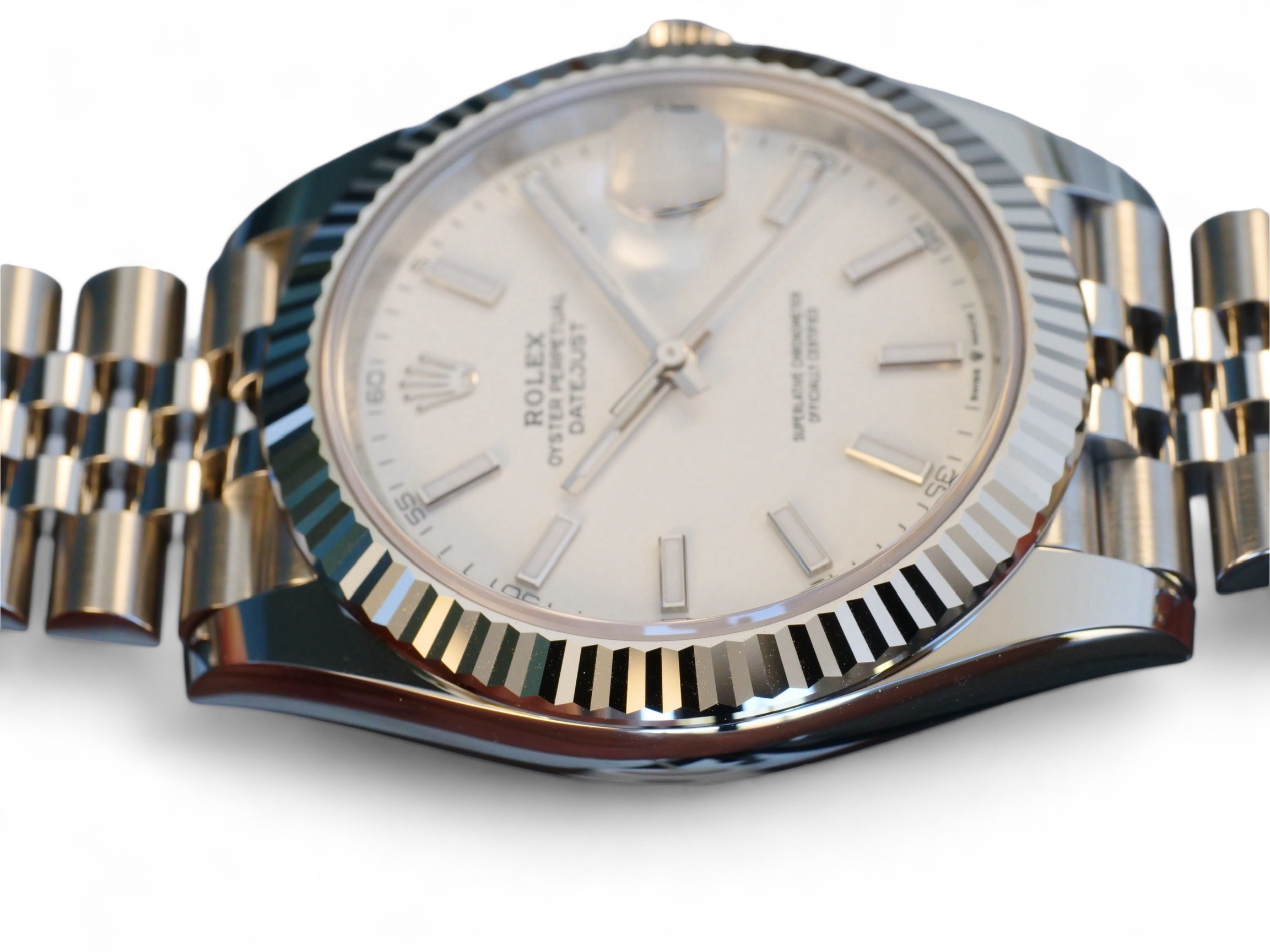 On offer for sale is an all-time classic, a timeless and beautiful example of Rolex Datejust 41 in White dial, 18ct Fluted bezel and Jubilee bracelet.