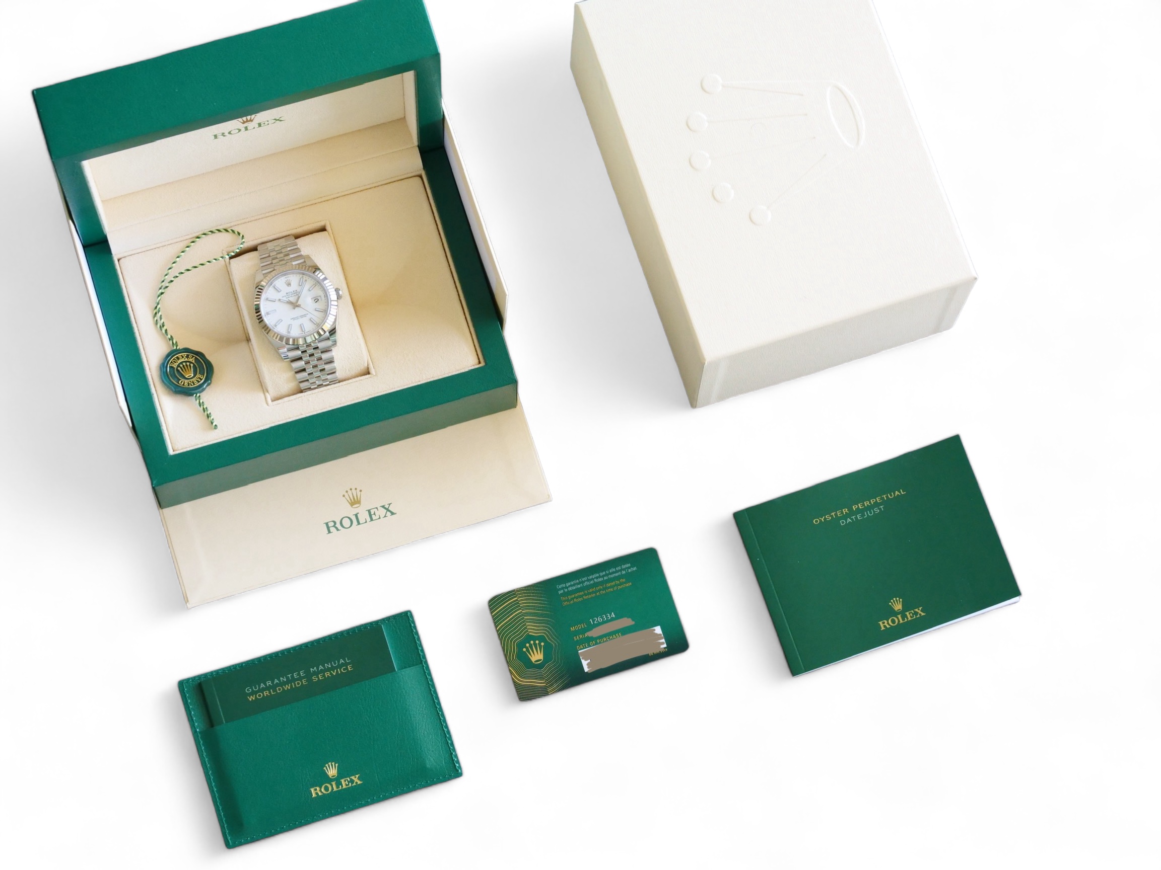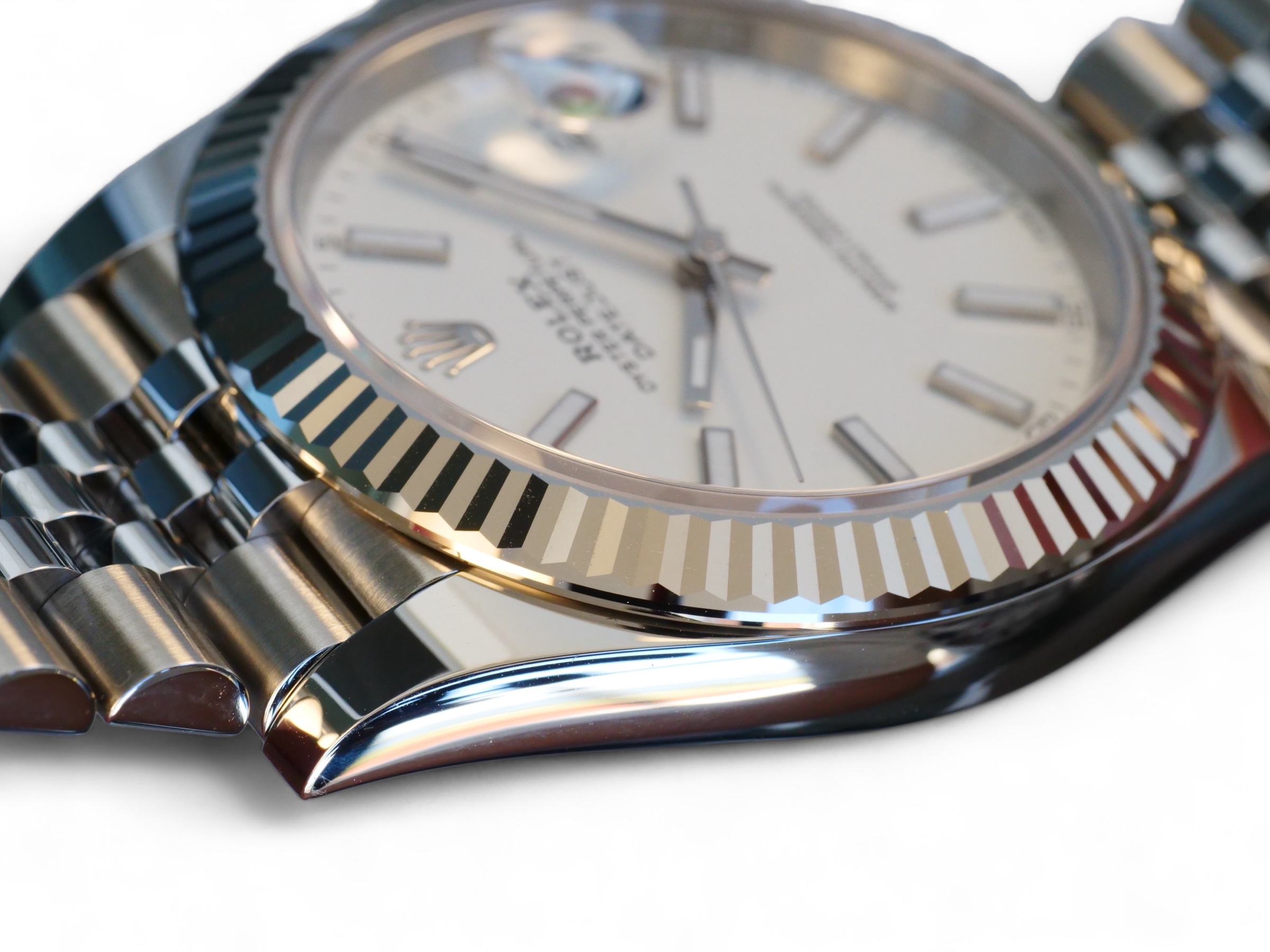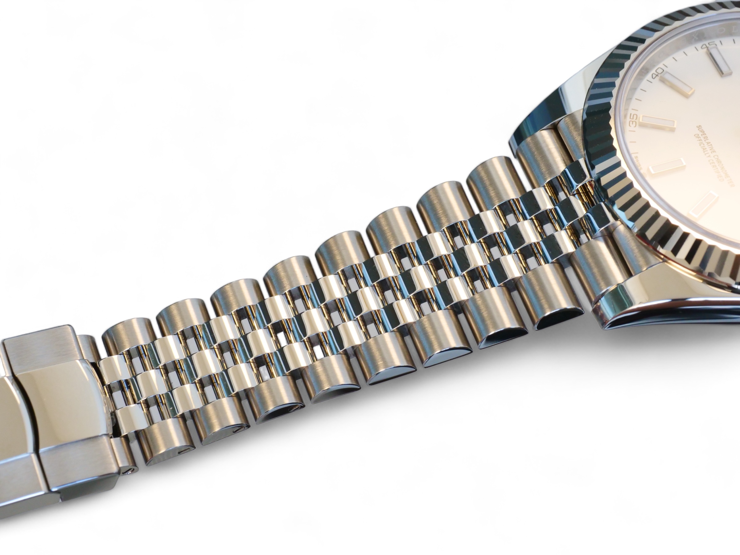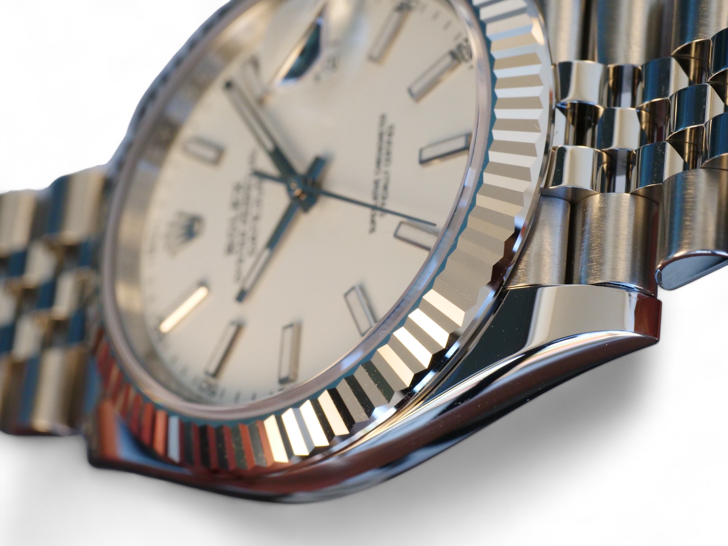 On offer for sale is an all-time classic, a timeless and beautiful example of Rolex Datejust 41 in White dial, 18ct Fluted bezel and Jubilee bracelet.