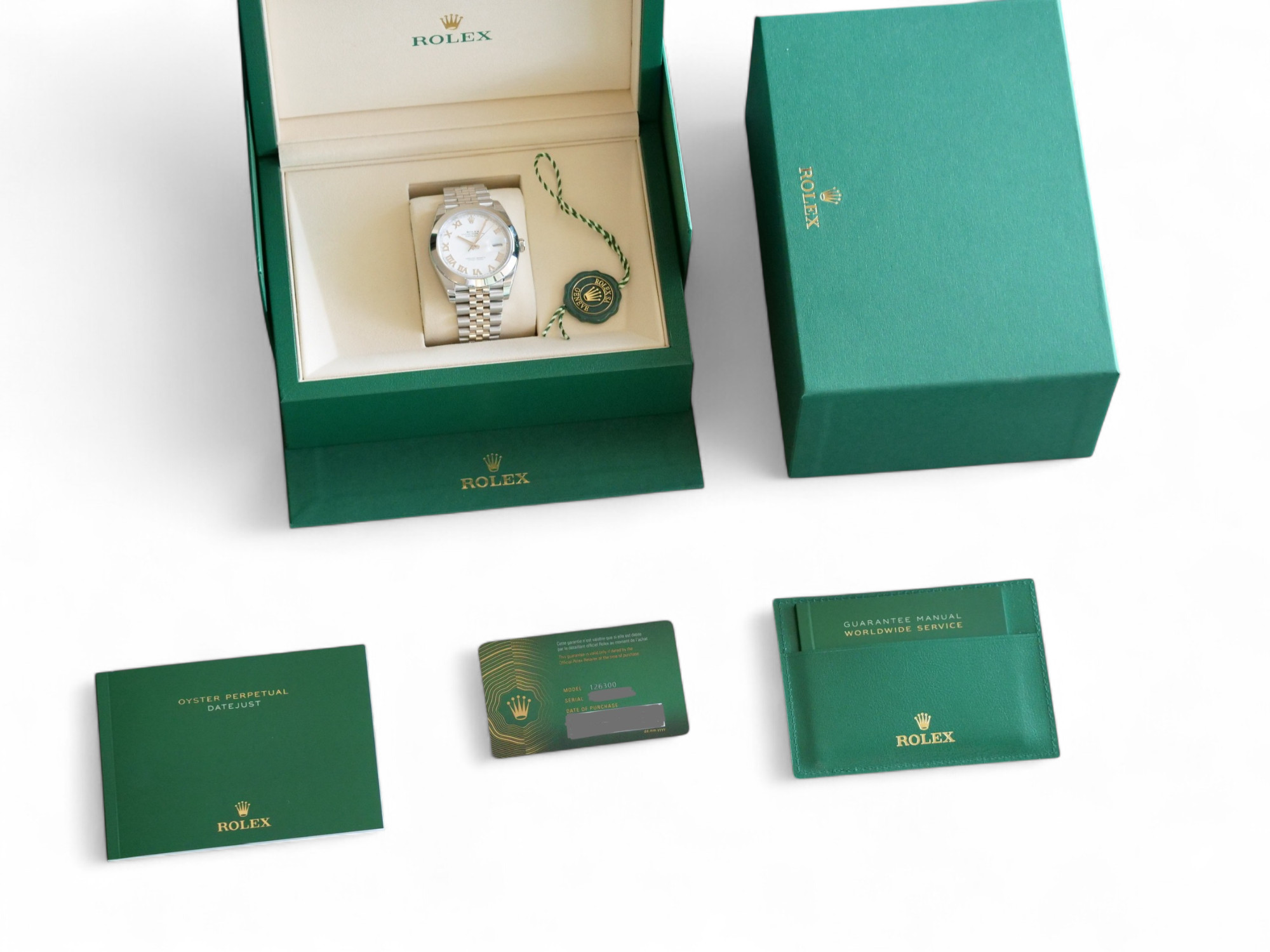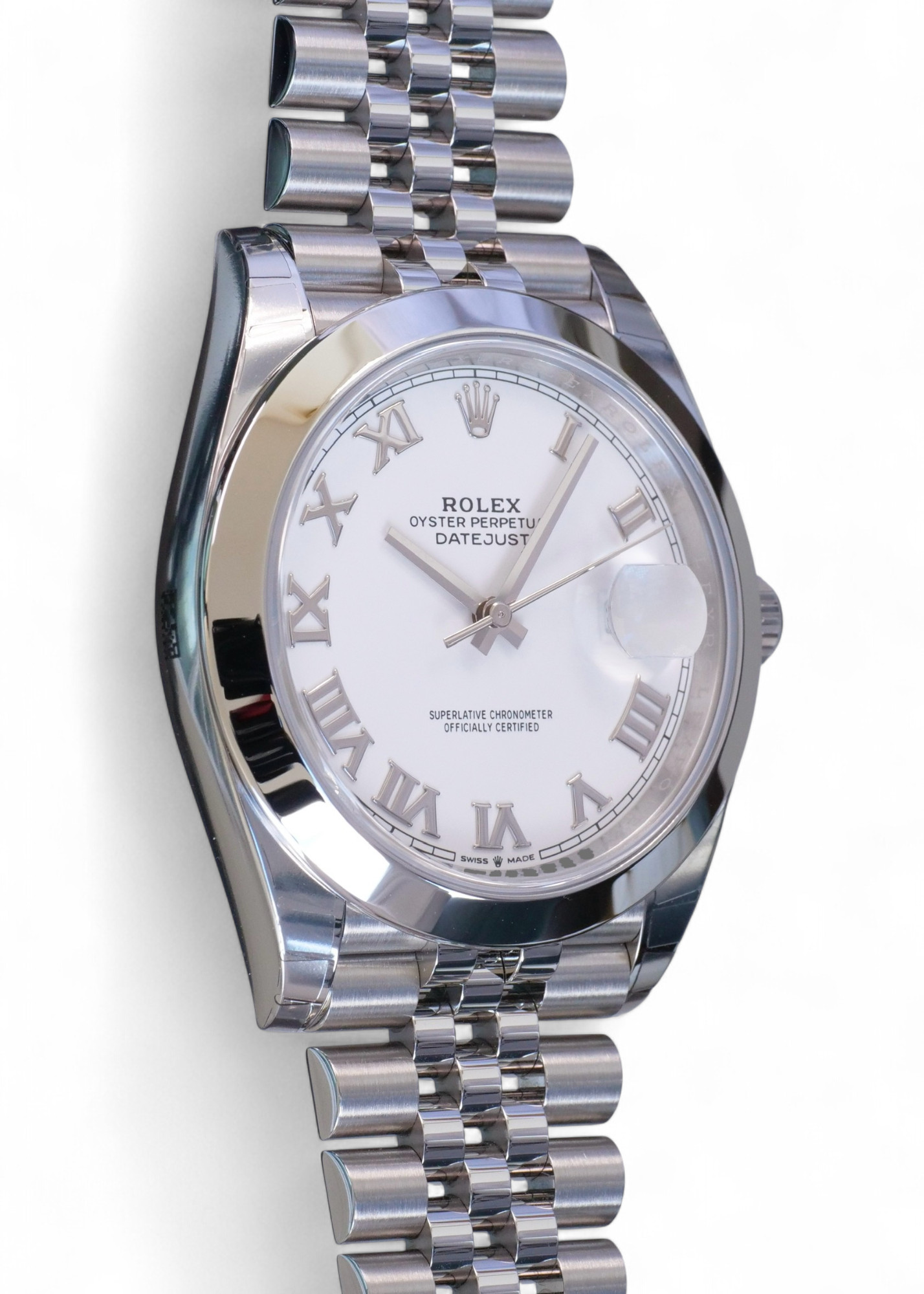 Please note that we don’t use catalog photos rather all the photos on this listing are taken from the actual Rolex Datejust 41 White Roman Dial timepiece for sale and are our intellectual property across all our platforms. The photos showcase the very timepiece that is available for sale i.e. what you see is exactly what you will receive, shall you wish to purchase this timepiece.