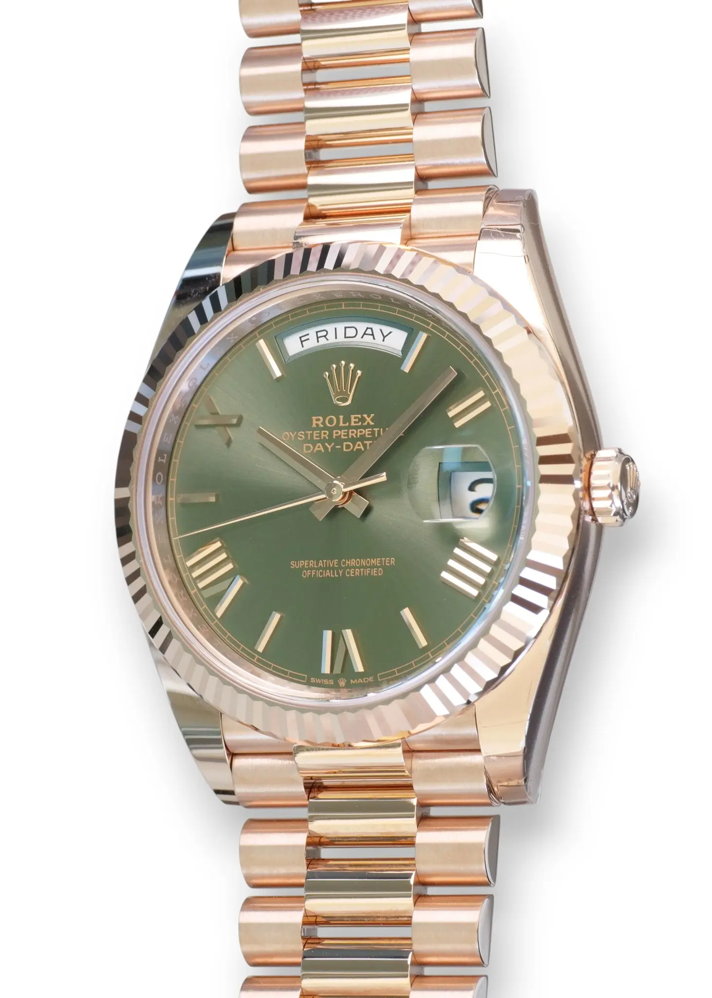 Rolex Day-Date 36 Everose gold 18ct with a Brown ombré, Diamond-set dial, fluted bezel and a President bracelet.