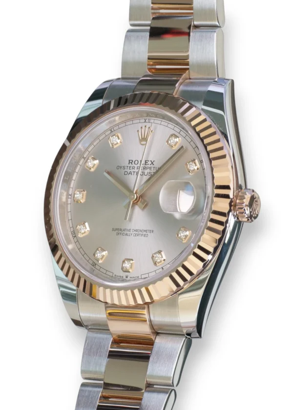 The Rolex Day-Date 40 Everose gold for sale is in Brand New and Unworn condition and comes complete as full set with boxes and papers dated 2025, with balance of Rolex factory warranty until 2030.