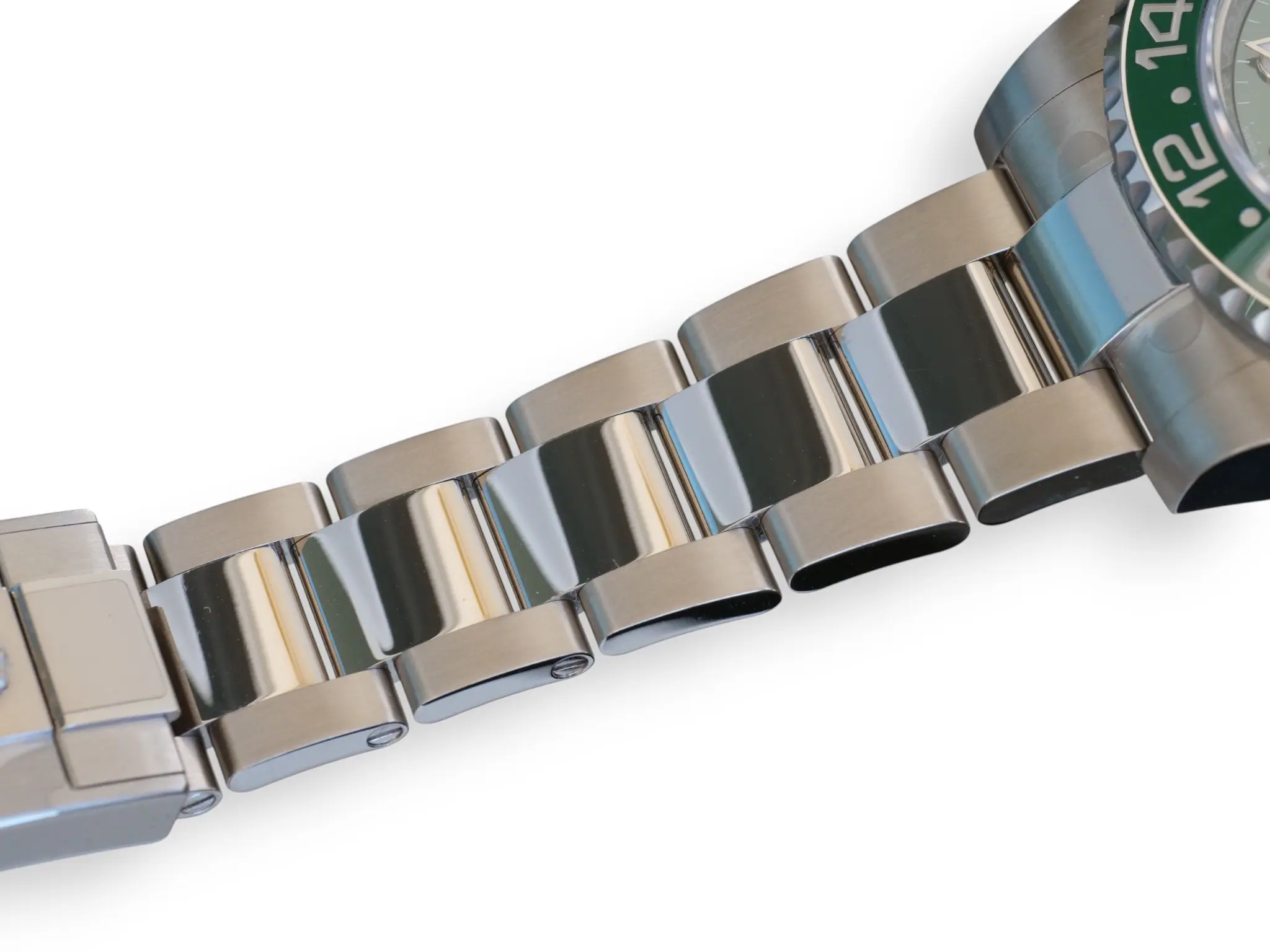 All photos are from the actual Rolex GMT Master-II White Gold Sprite timepiece for sale including the photo with delivery contents and form part of the description. The photos are indicative of the condition of the watch and form part of the description, and the items that come included in the box.