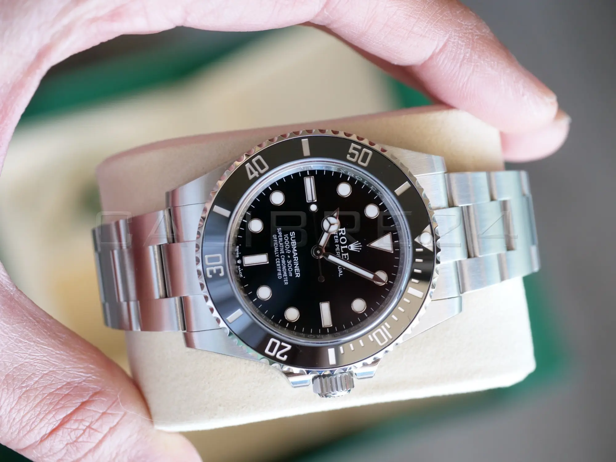 All the photos on the listing are from the actual Rolex Submariner 41 No Date 124060 timepiece available for sale and form part of the description and condition description i.e. the photos are indicative of the condition of the watch and are our sole property across all platforms. Please note that since we use a specialized equipment and macro lens, there may be some fingerprints and dust/debris visible in the photos that is otherwise not perceivable from an unaided human eye.