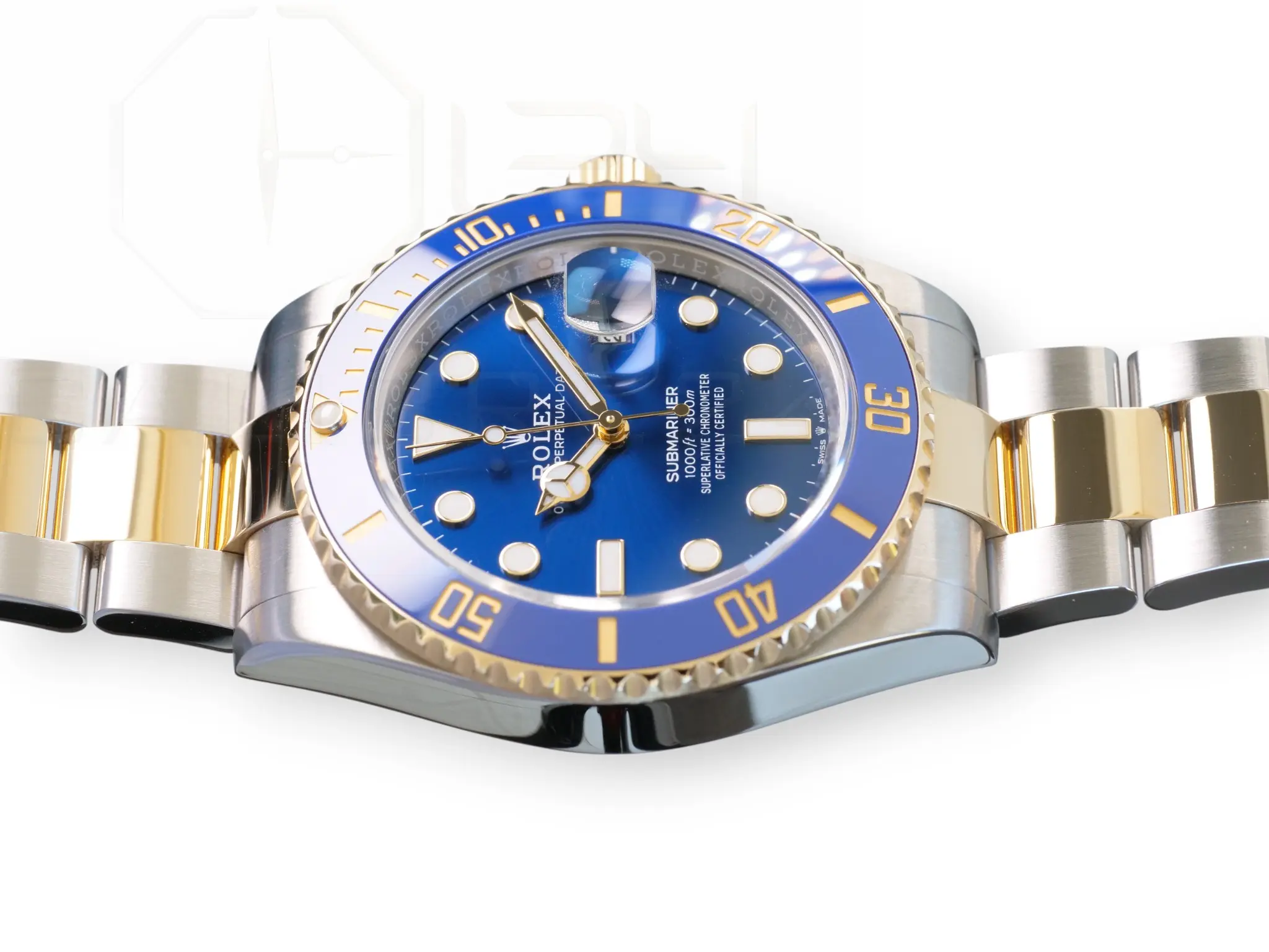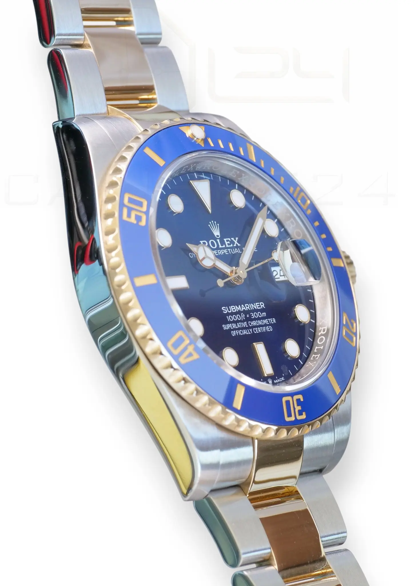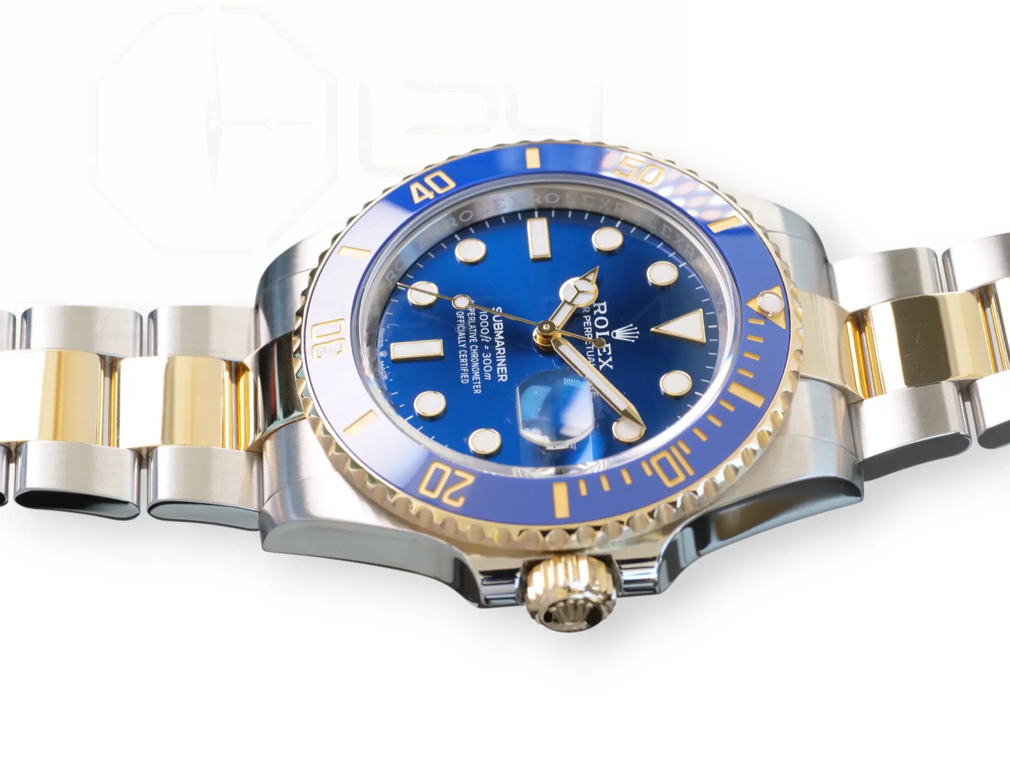 904L Oystersteel with 18ct yellow gold bezel with blue ceramic insert