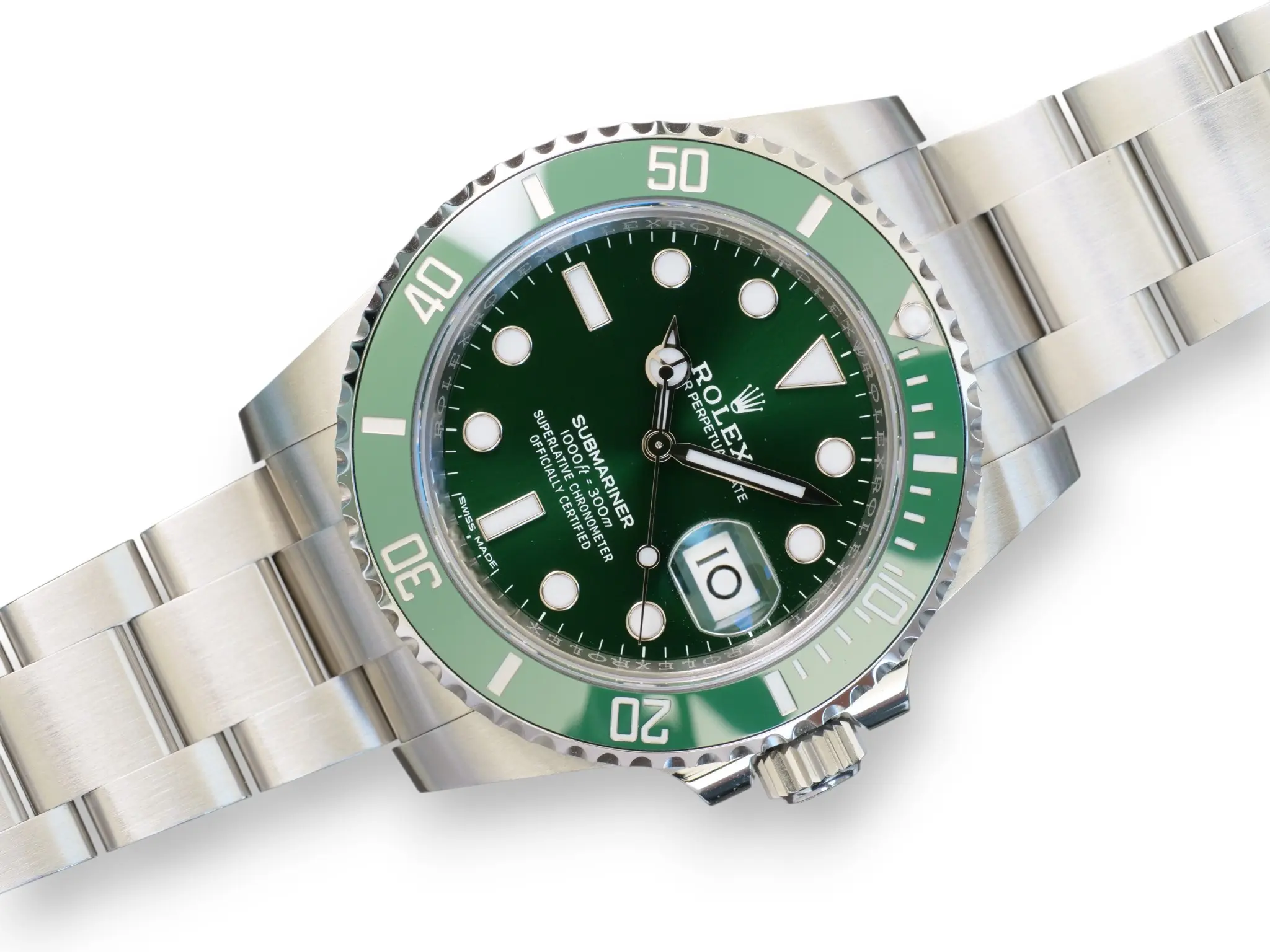 All photos of this Rolex Submariner Date Hulk are from the actual piece available for sale and form part of the description. The photos are indicative of the current condition of the watch. All serials on the watch and papers are greyed out due to privacy and security reasons.