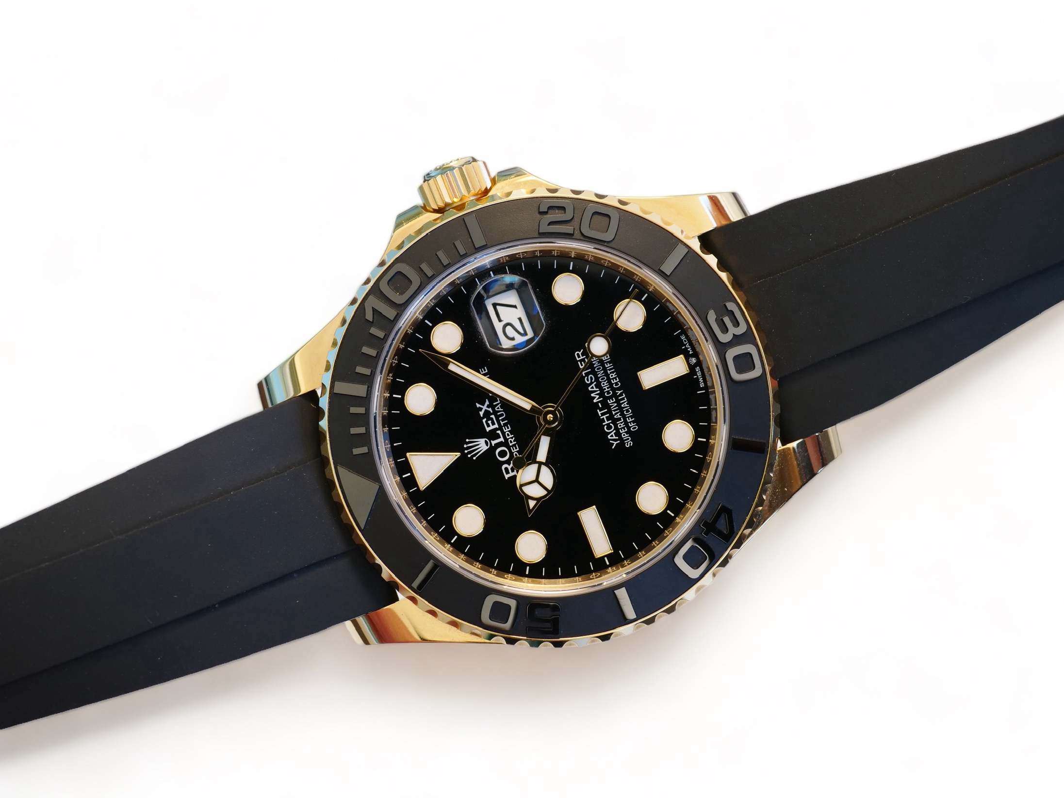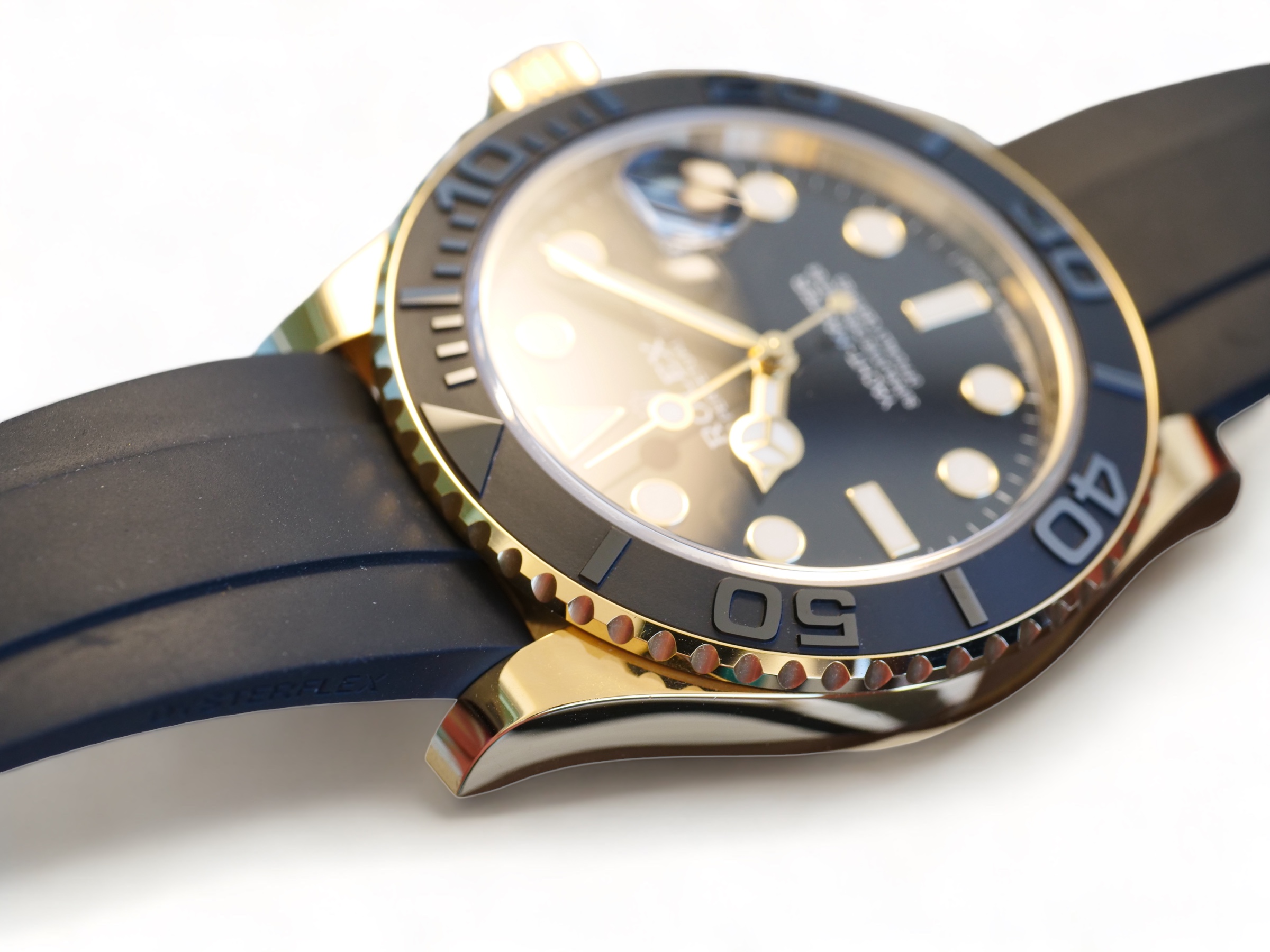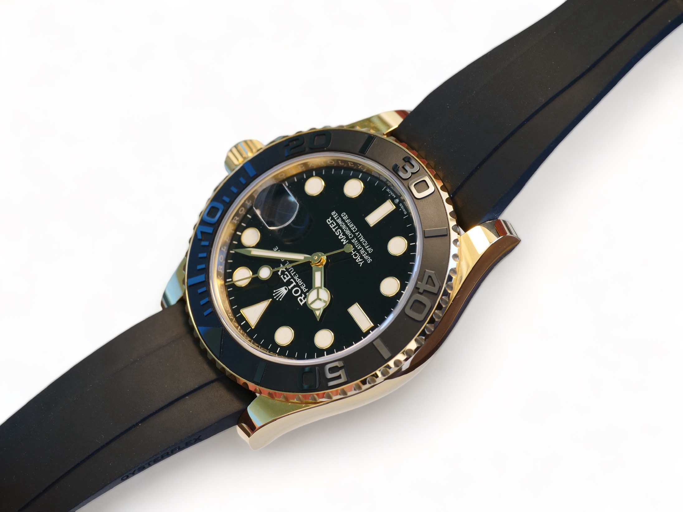 On offer for sale is a very beautiful Rolex Yachtmaster in 18ct Yellow gold, a modern 42mm case size with a ceramic bezel and, Oysterflex bracelet with folding Oysterlock safety clasp with Glidelock extension system.