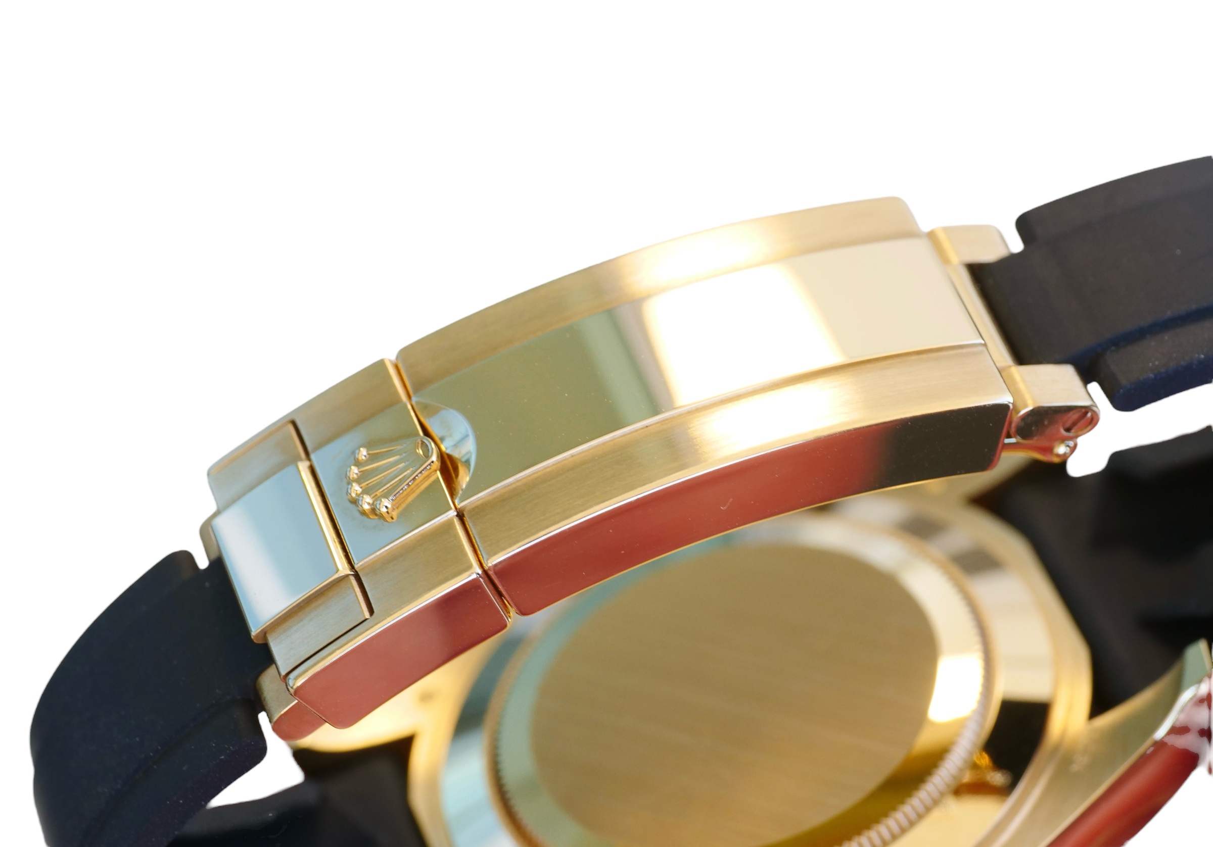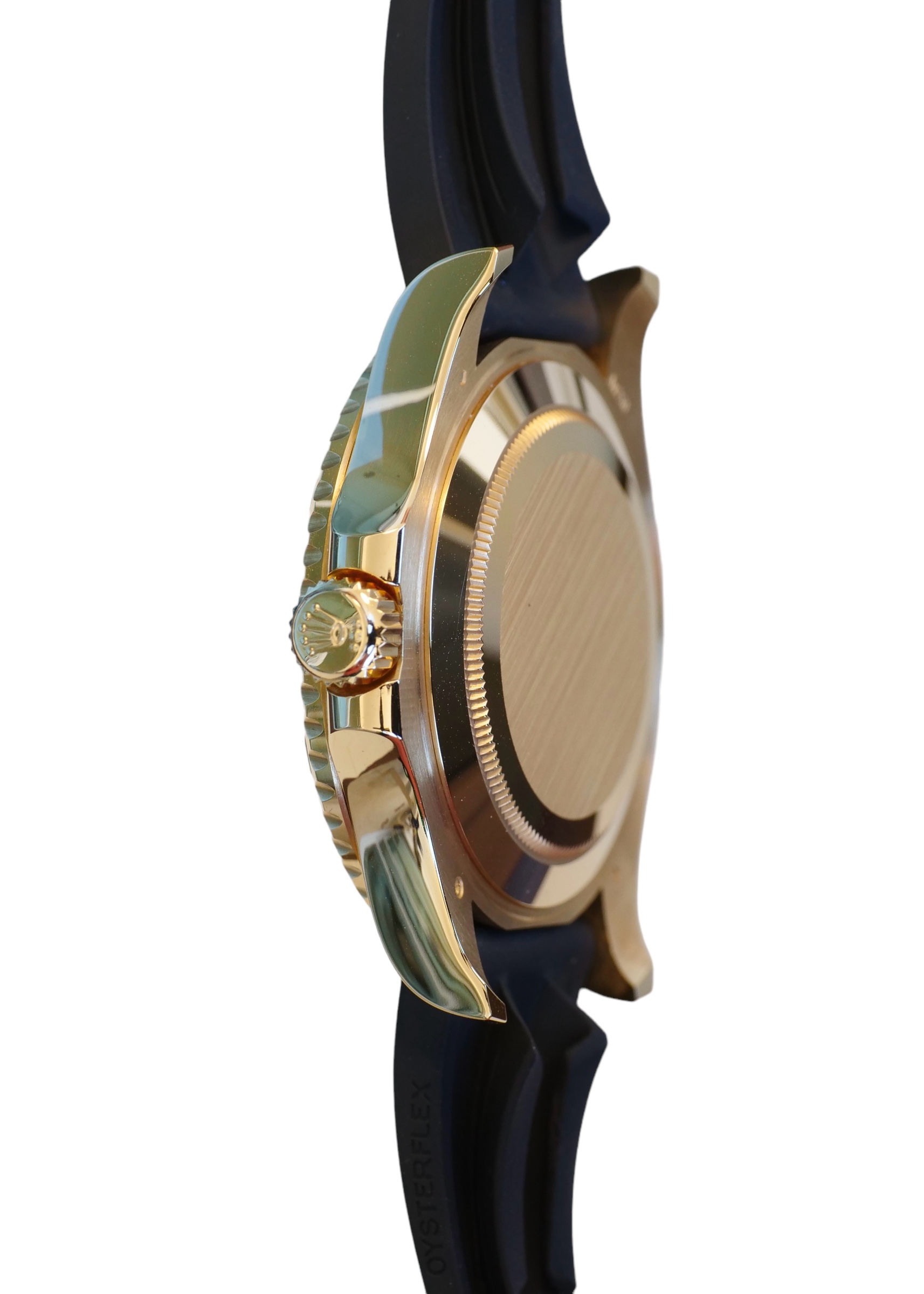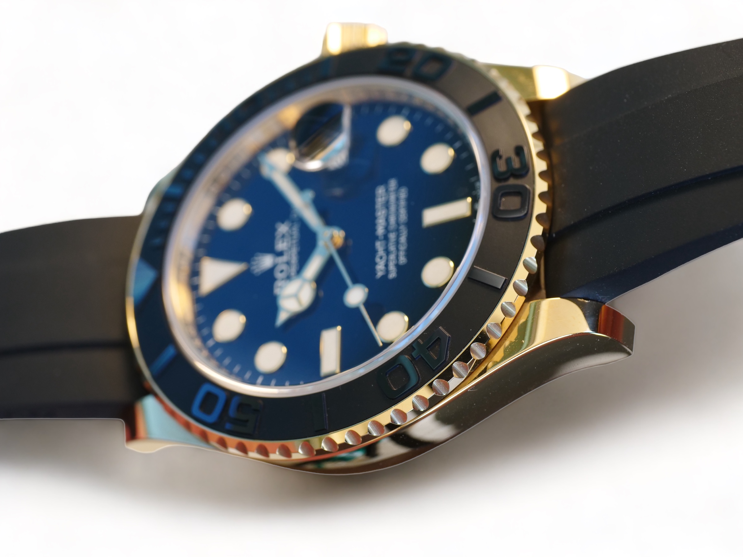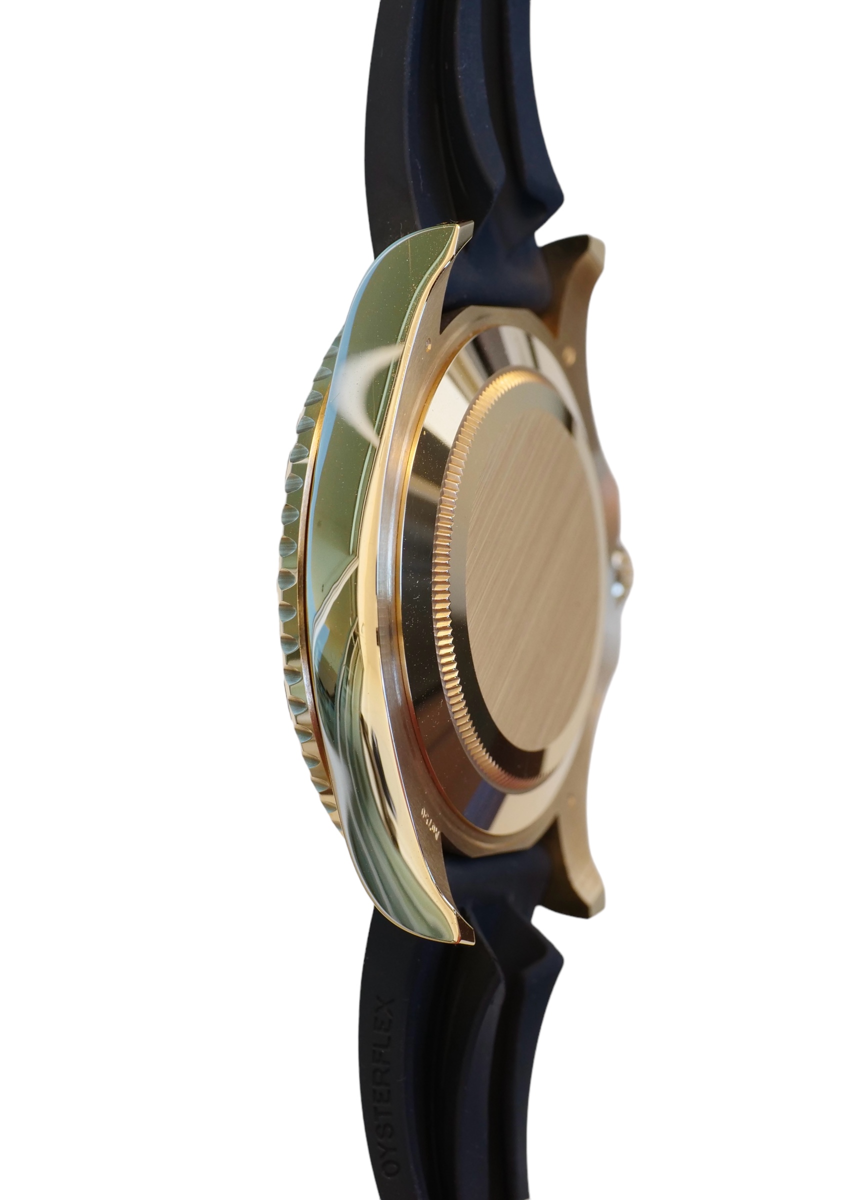 On offer for sale is a very beautiful Rolex Yachtmaster in 18ct Yellow gold, a modern 42mm case size with a ceramic bezel and, Oysterflex bracelet with folding Oysterlock safety clasp with Glidelock extension system.
