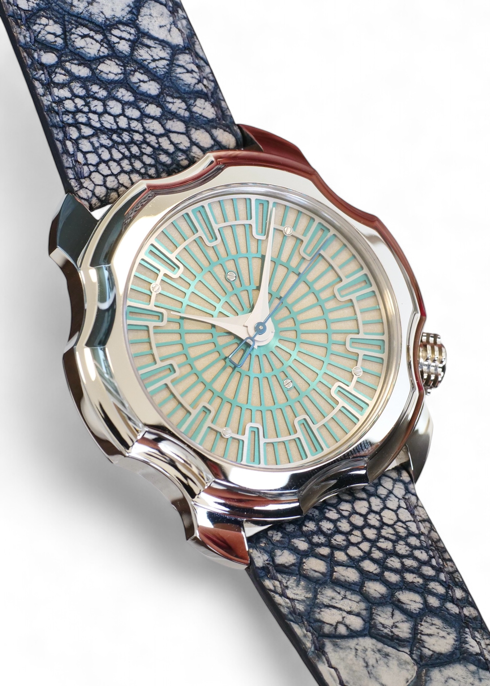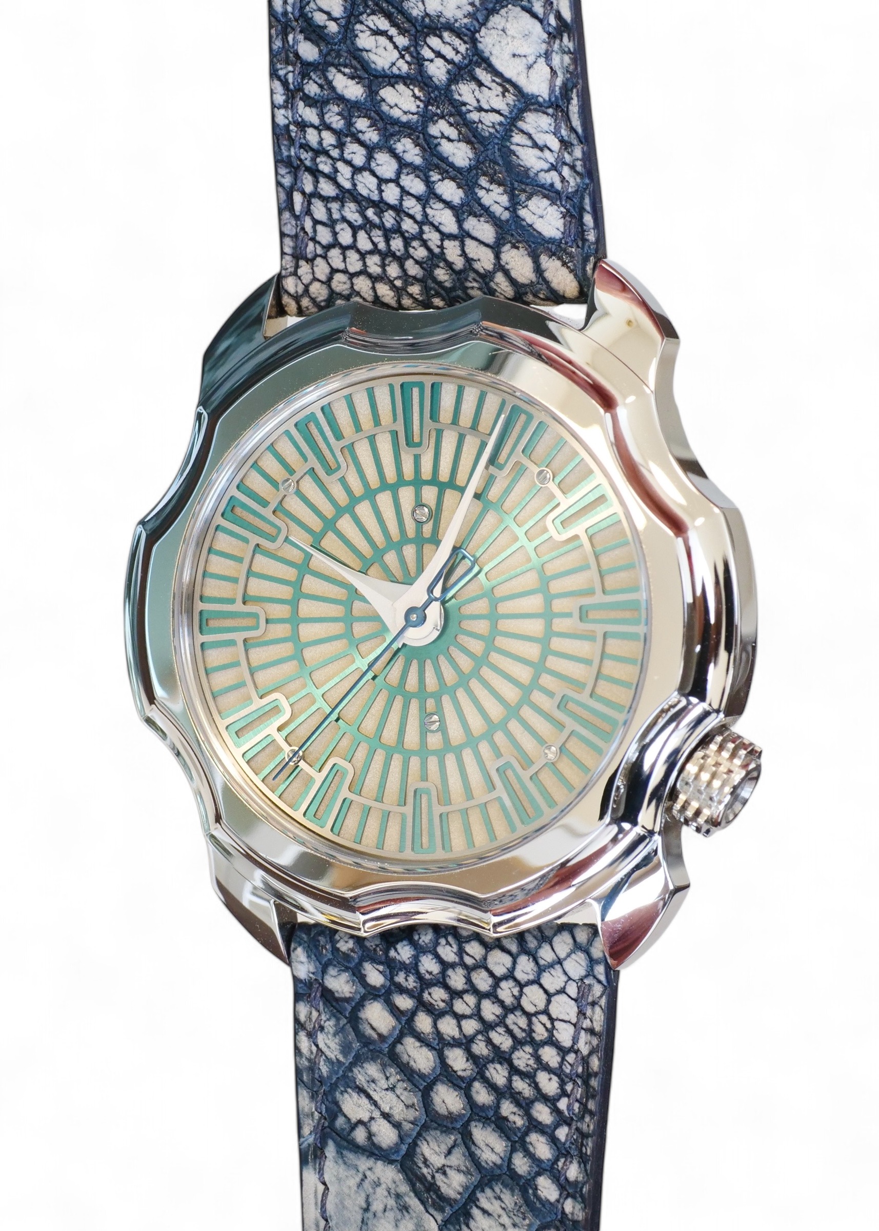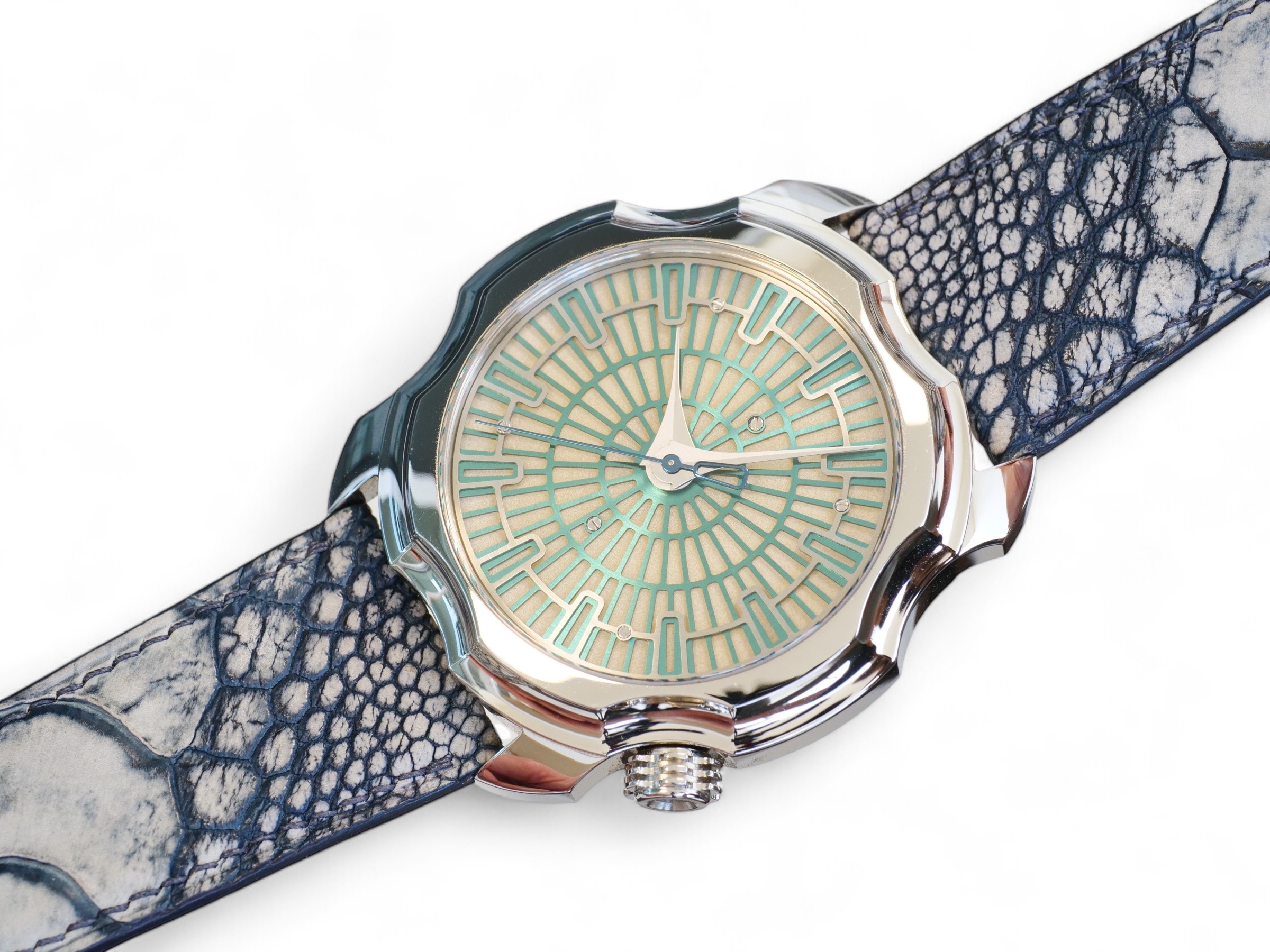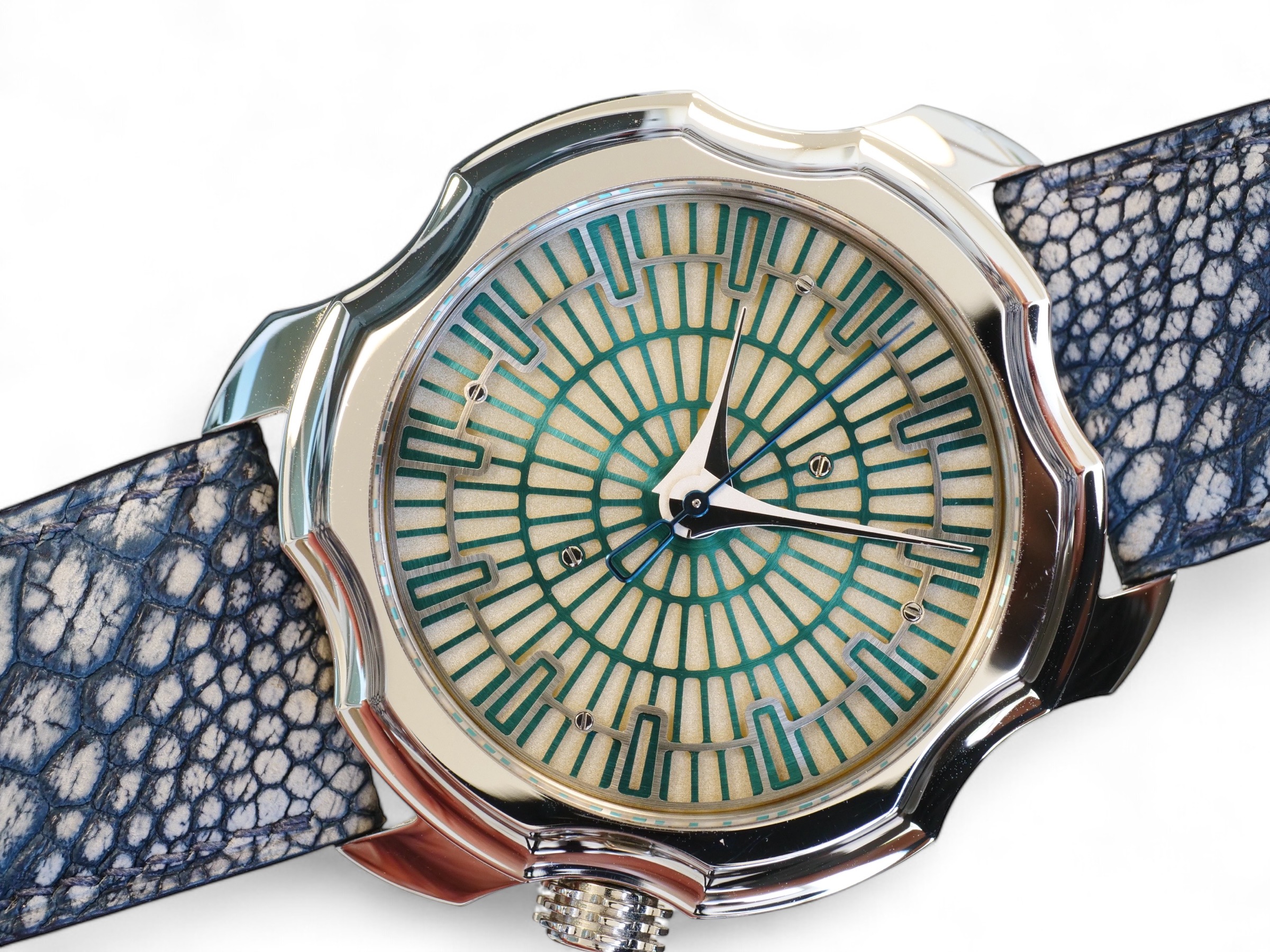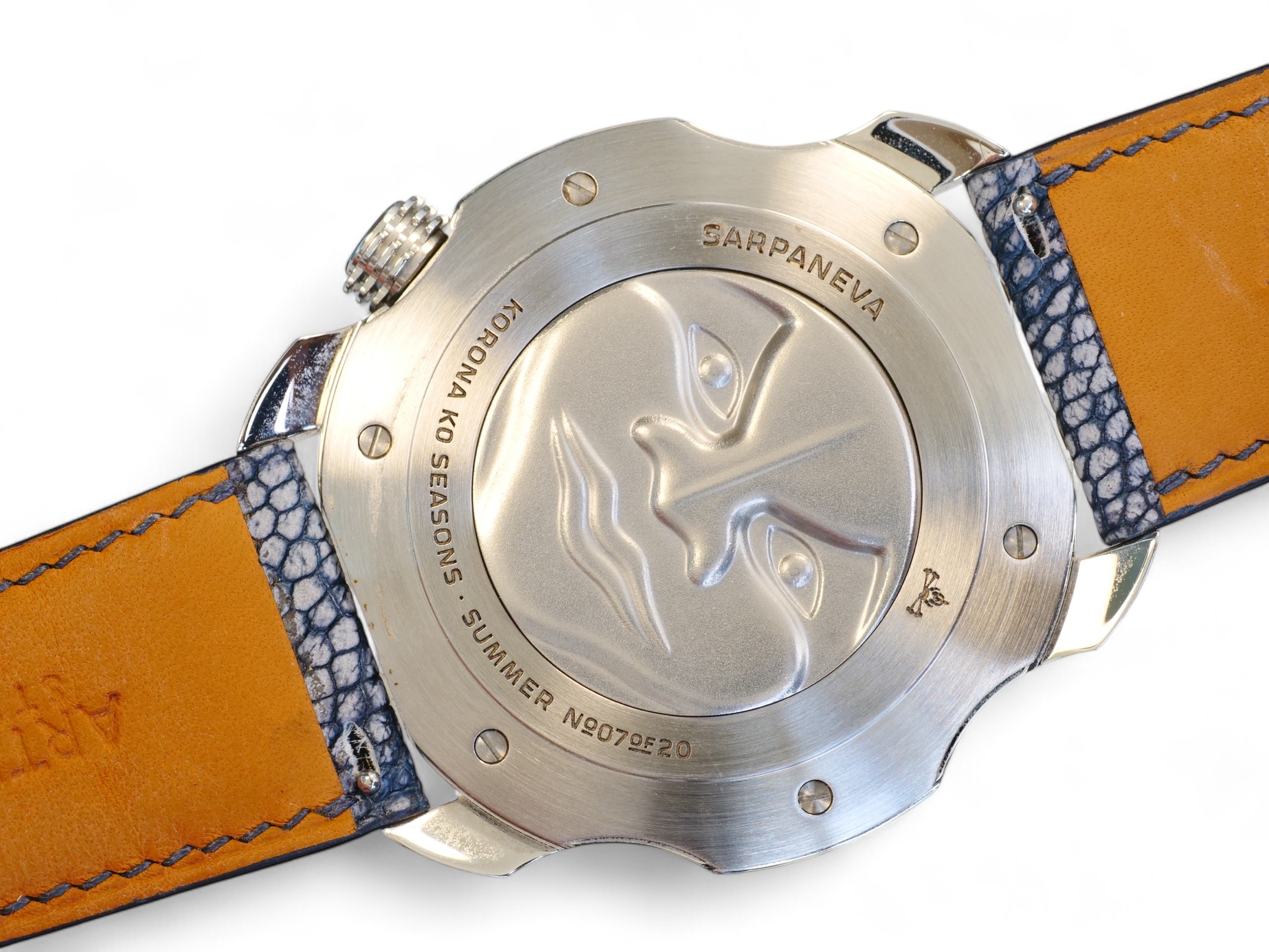 Sarpaneva K0 Seasons Summer is a highly collectible, no longer produced or available for purchase, and a very rare example of fine watchmaking. One of only 20 ever made, Sarpaneva Seasons Summer, with a stunning Dreamy-Green coloured lume dial.