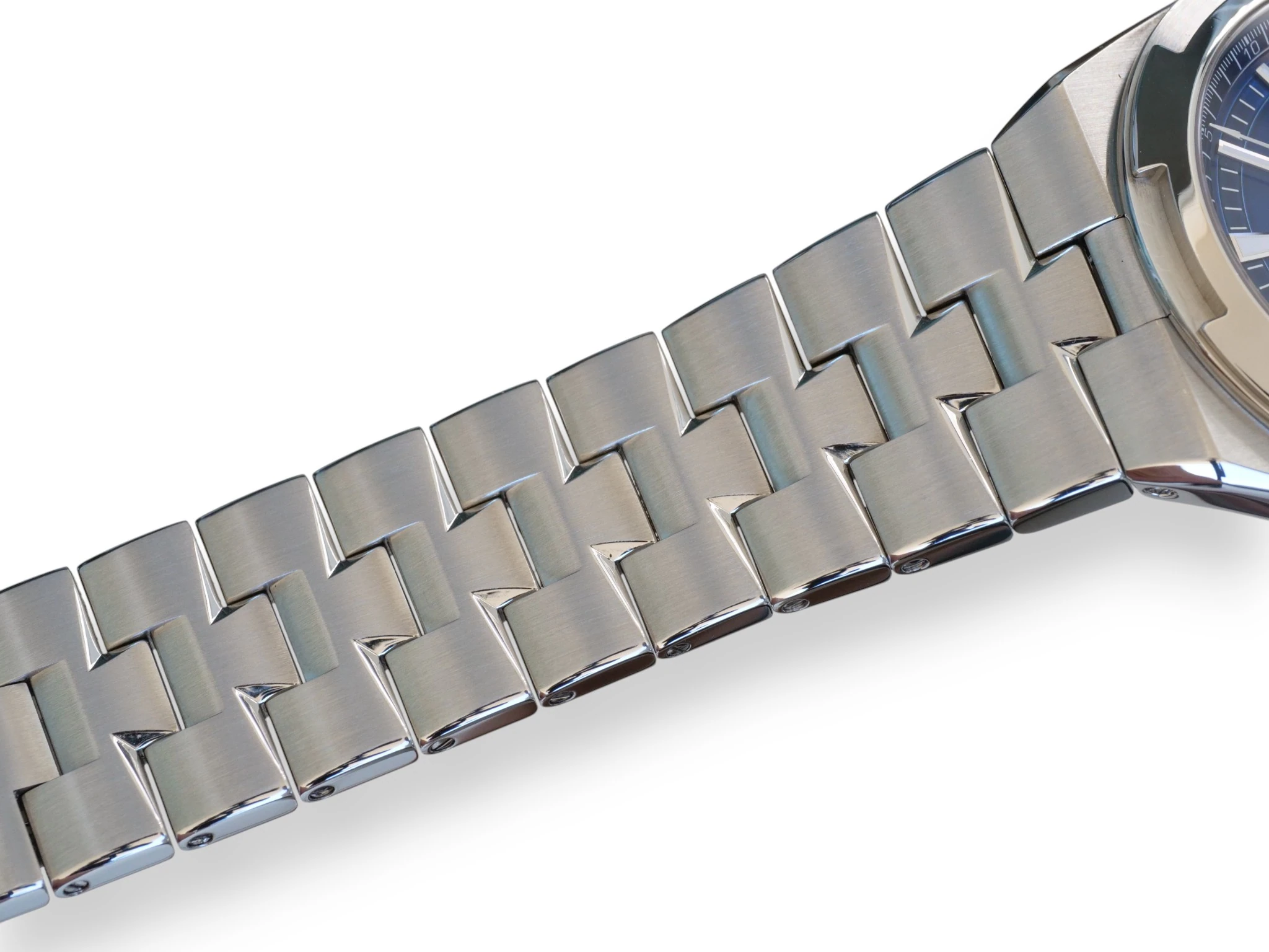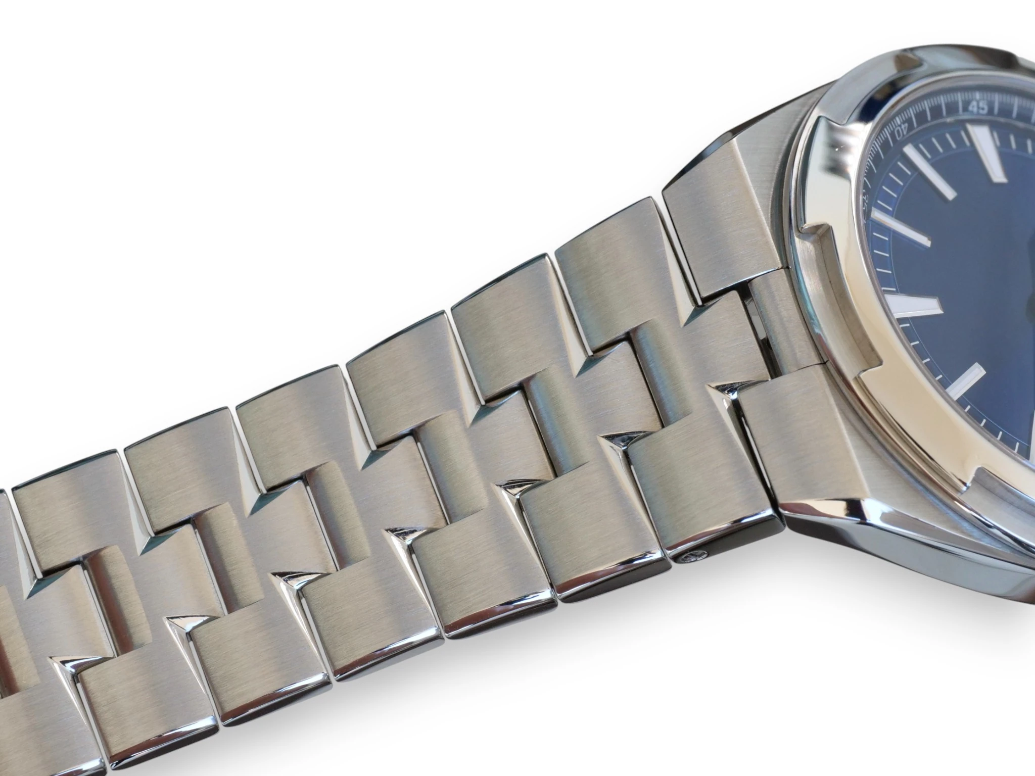 The Vacheron Constantin Overseas 4500V, one of the finest examples of integrated bracelet watch from one of the Holy Trinity and oldest watch manufacturers with multiple centuries long history and brand legacy, the Vacheron Constantin Overseas 4500V in the most sought after, boutique-exclusive beautiful lacquered blue dial, reference 4500V/110A-B128.
