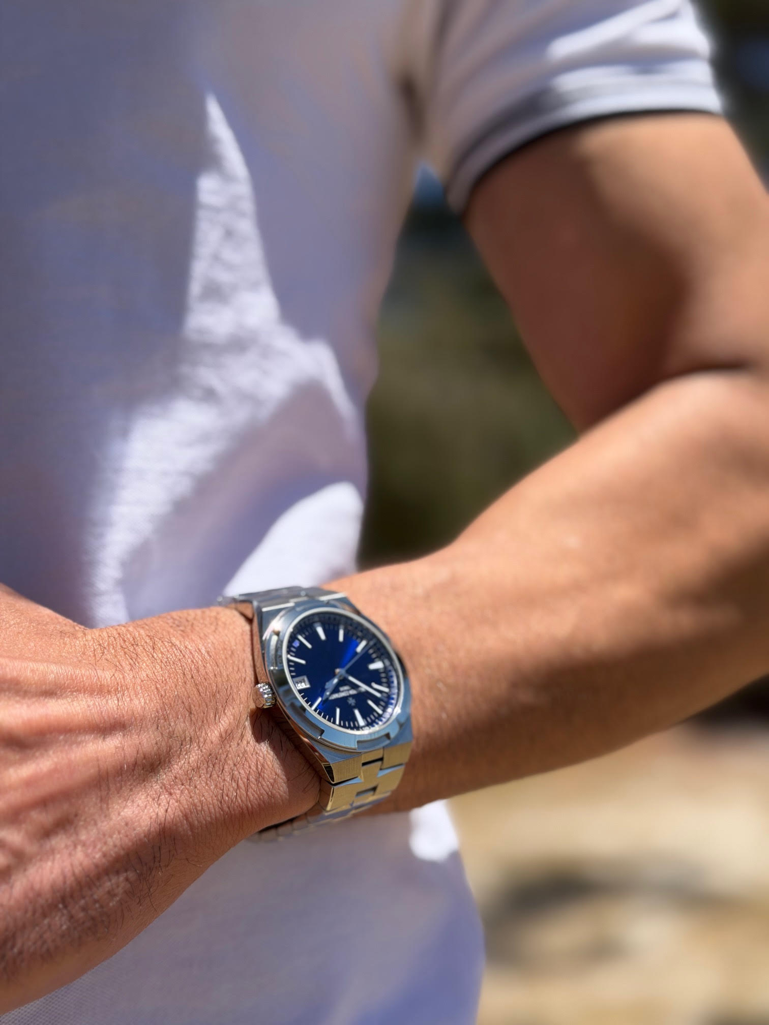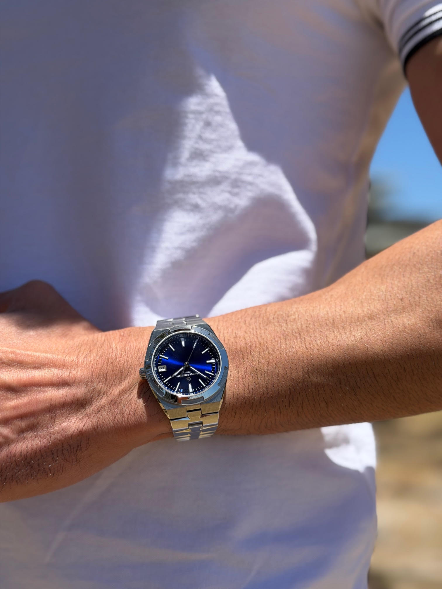 All photos on this listing are from the actual Vacheron Constantin Overseas 4520V Blue Dial timepiece for sale and are our intellectual property across all our platforms. The serial number and the card details are redacted in all the photos for privacy and security reasons.